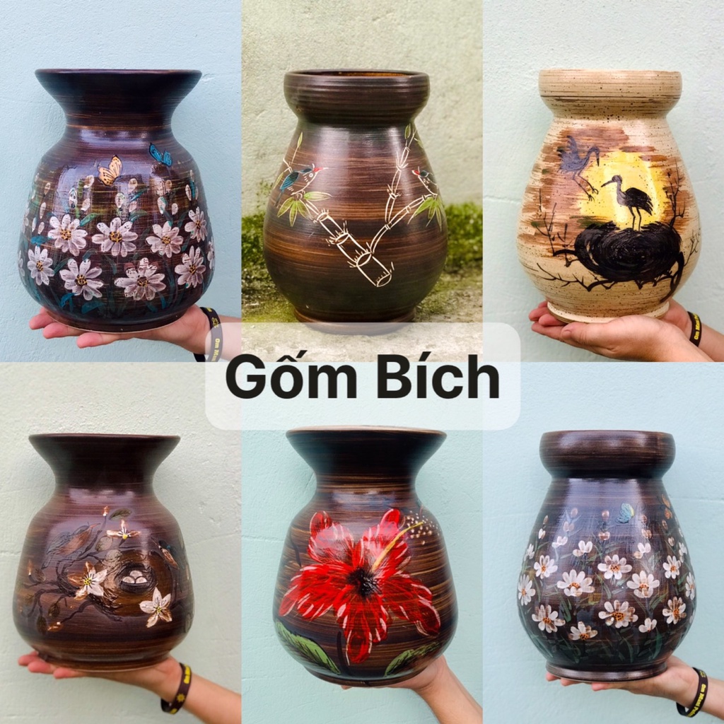 Nhà cửa & Đời sống > Trang trí nhà cửa > Bình trang trí || Bình Hoa Lọ Hoa Để Bàn Men Mộc Vẽ Tay Gốm Sứ Bát Tràng Nhiều Mẫu - Gốm BíchCòn hàng