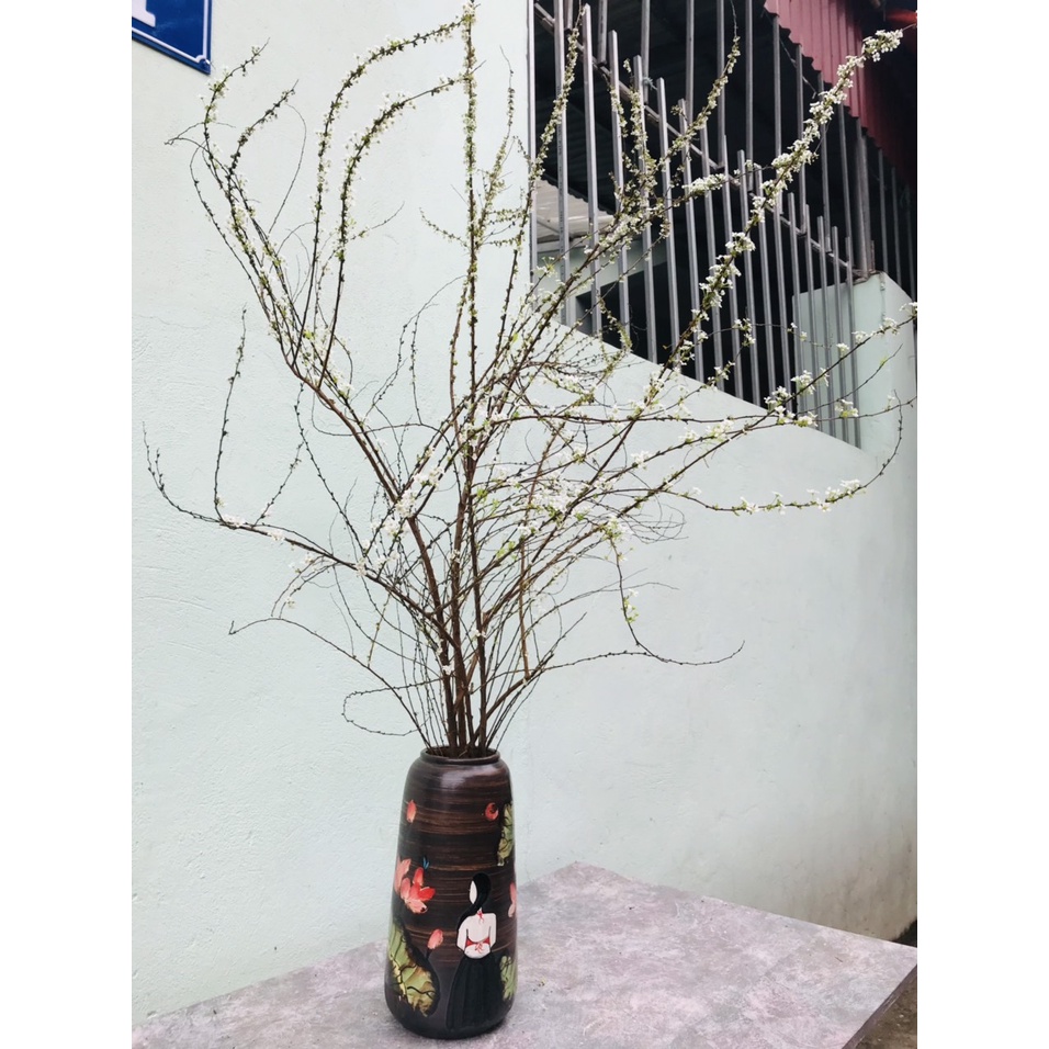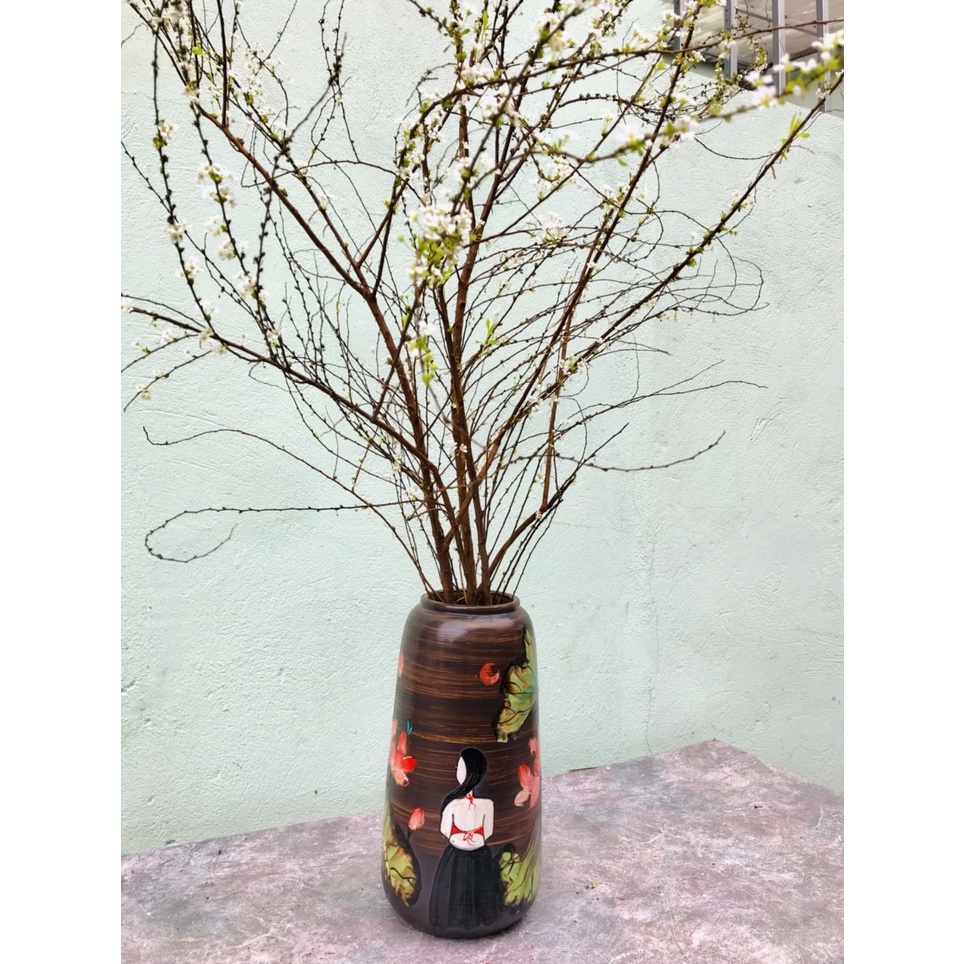 Bình Hoa Lọ Hoa Gốm Dáng Bom Men Mộc Vẽ Tay Thủ Công Gốm Sứ Bát Tràng - Gốm Bích