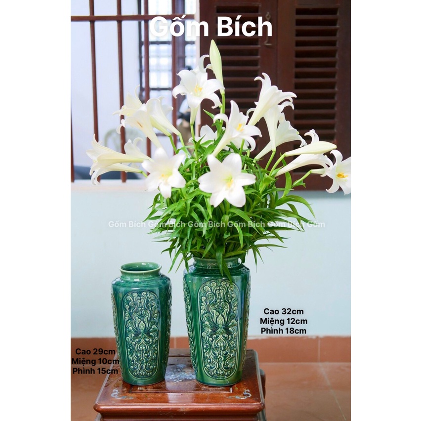 Nhà cửa & Đời sống > Trang trí nhà cửa > Bình trang trí || Bình Hoa Lọ Hoa Gốm Dáng Trụ Vuông Khắc Sen Nổi Men Ngọc Lưu Ly Gốm Sứ Bát Tràng - Gốm BíchCòn hàng