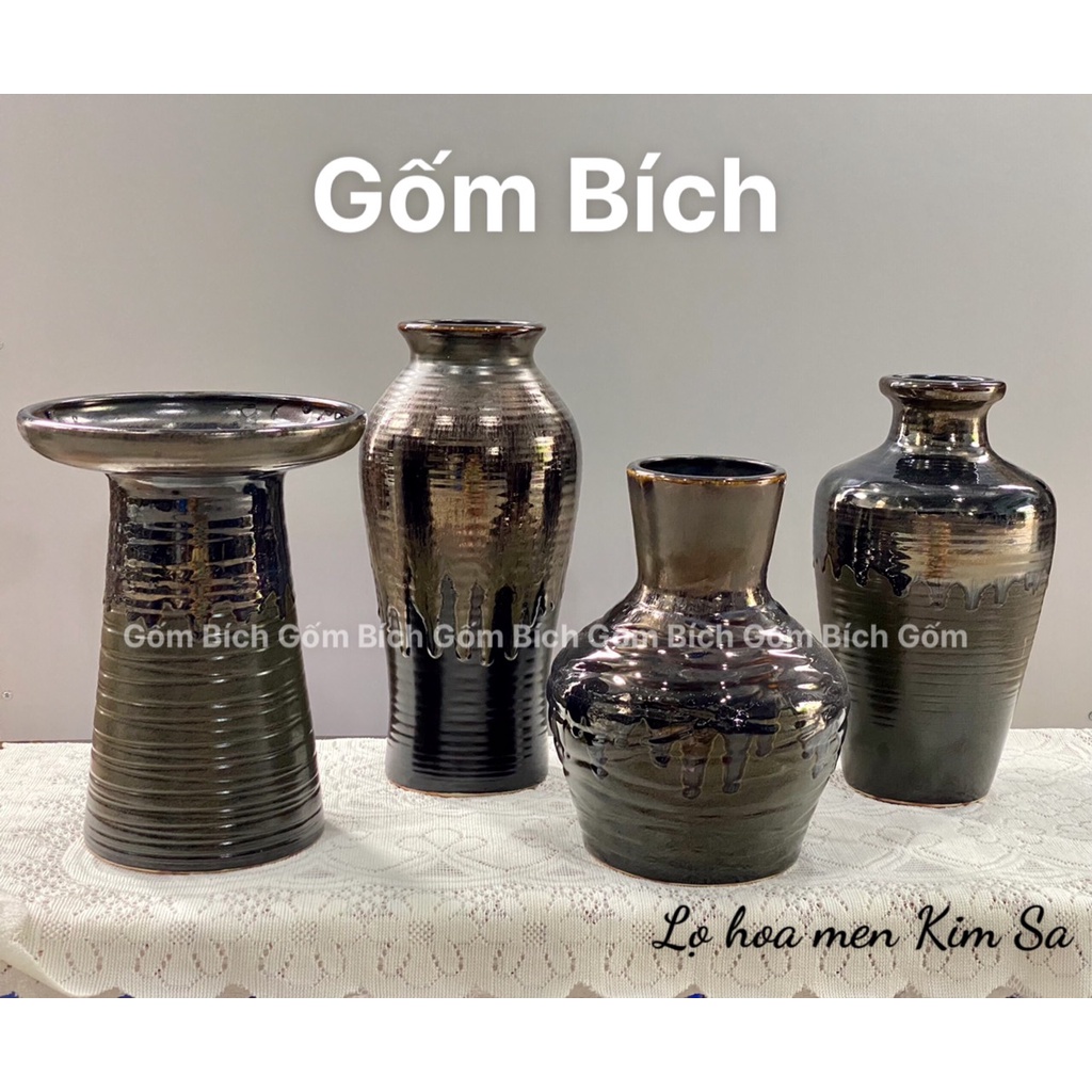 Bình Hoa Lọ Hoa Gốm Nhiều Mẫu Men Kim Sa Gốm Sứ Bát Tràng - Gốm Bích