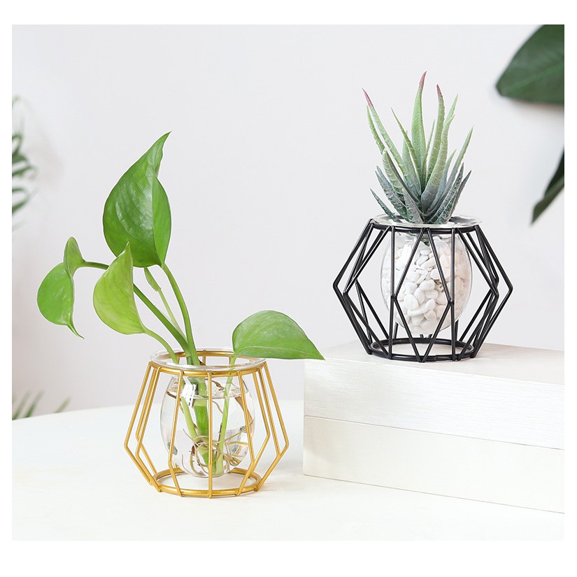 - Lọ hoa thủy tinh có thiết kế hiện đại với giá đỡ kim loại đơn giản nhưng cuốn hút, trưng bày những bông hoa của bạn trong 1 ống nghiệm hình trụ và giá đỡ hình học được thiết kế đẹp mắt.