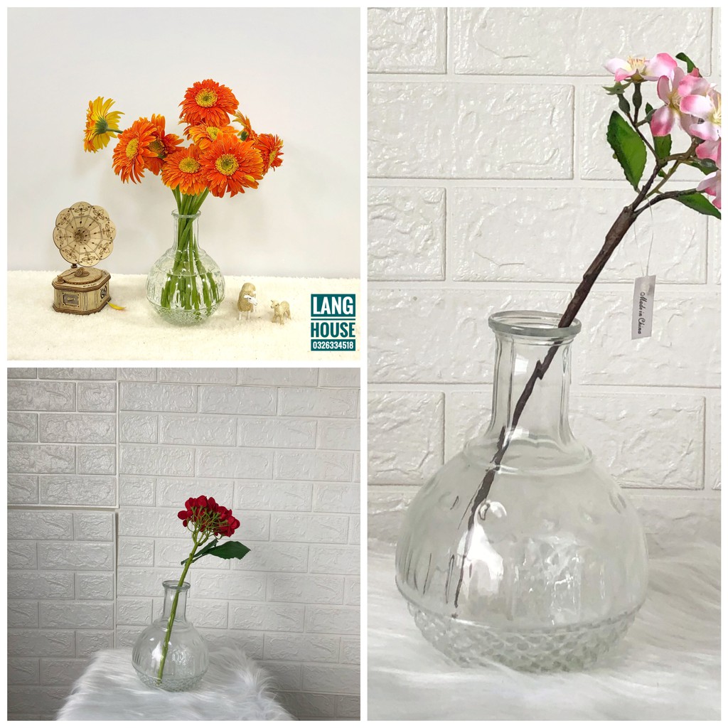 ✅ Lọ được làm bằng thuỷ tinh. Lọ được thổi hoa văn sắc nét, thuỷ tinh trong suốt. có các mẫu bình sau: