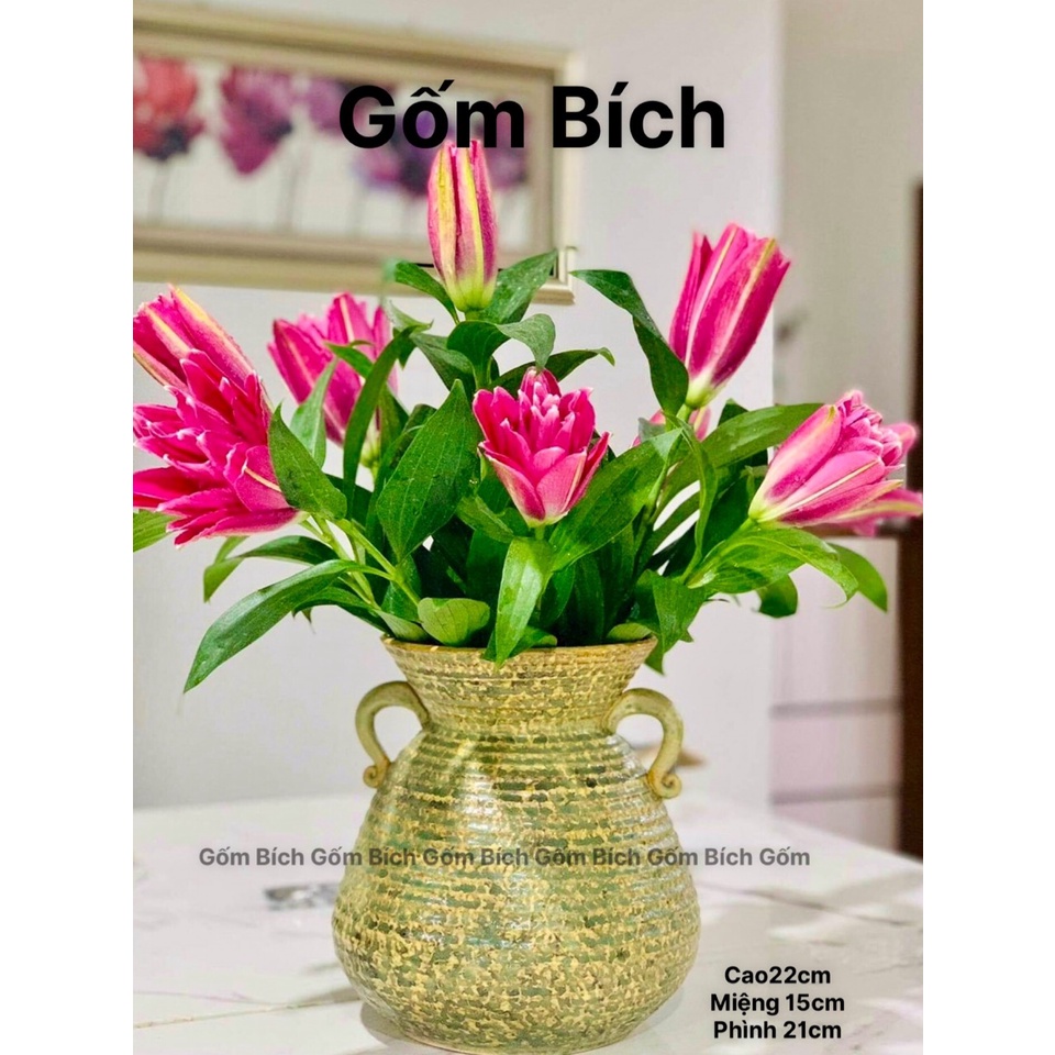 Bình Hoa Lọ Hoa Men Mộc Dáng Giỏ Cua Đắp Tai Gốm Sứ Bát Tràng - Gốm Bích