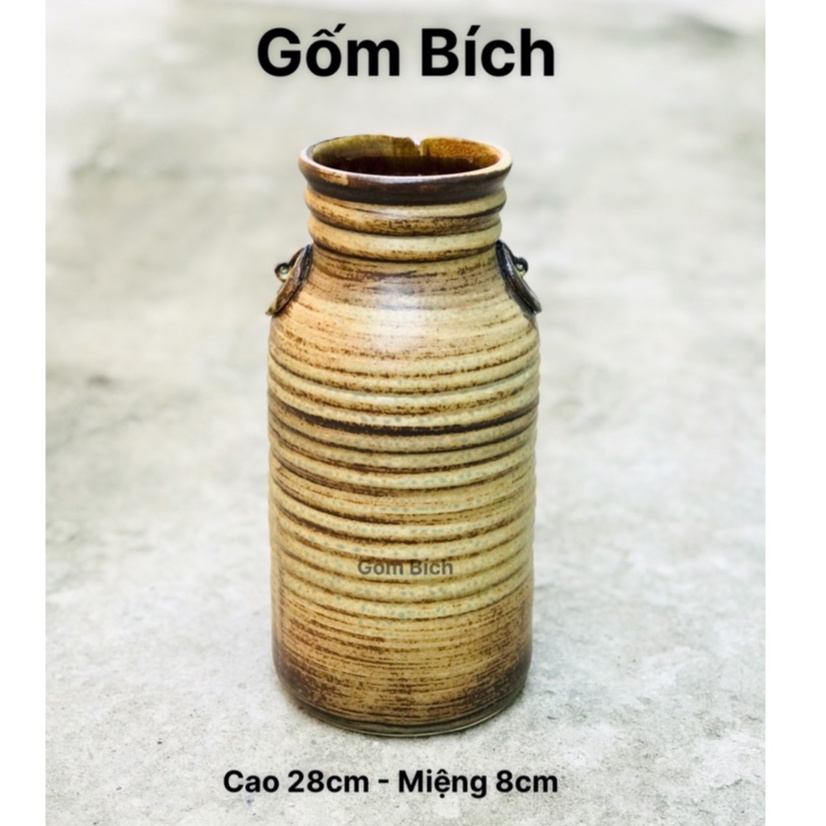 - Lọ hoa dáng chai gân men mộc - Hàng loại 1