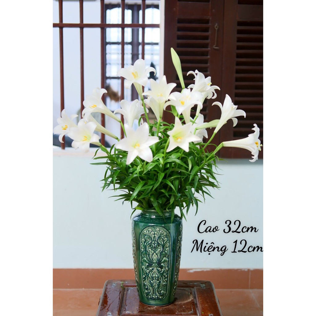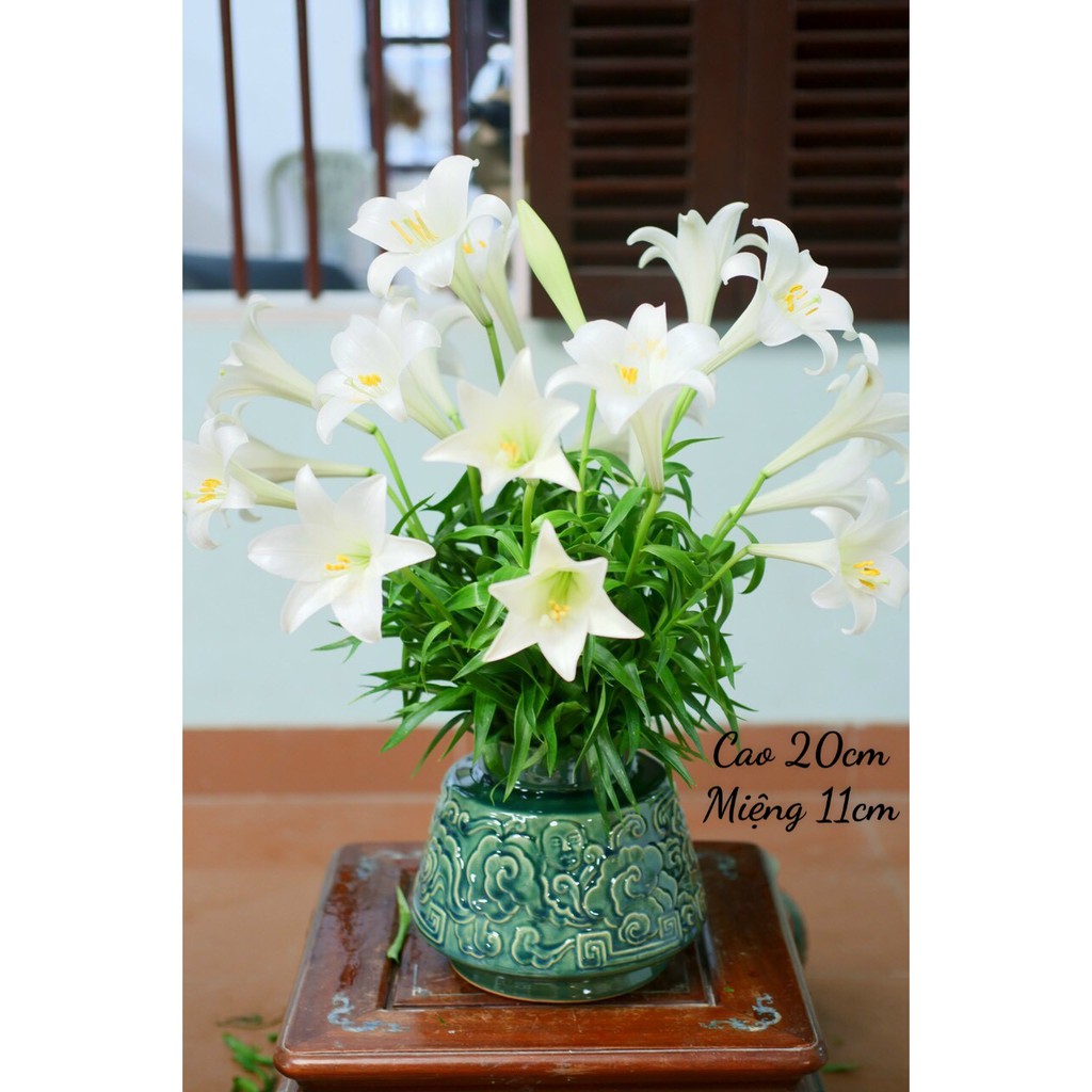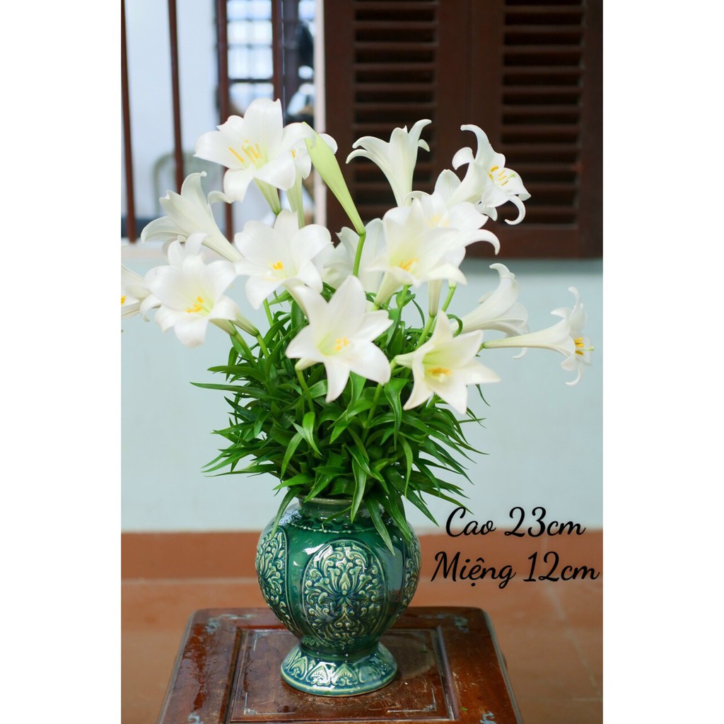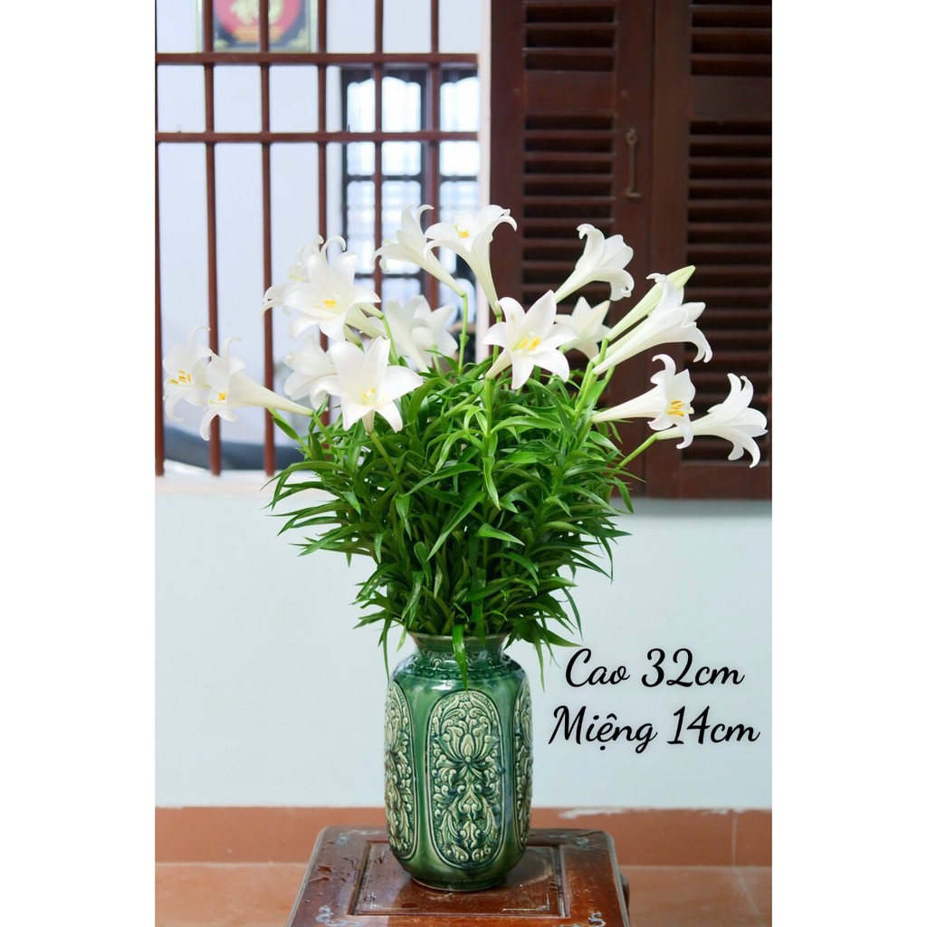 Bình Hoa Lọ Hoa Men Ngọc Khắc Hoa Sen Nổi - Gốm Sứ Bát Tràng - Decor Nội Thất Văn Phòng