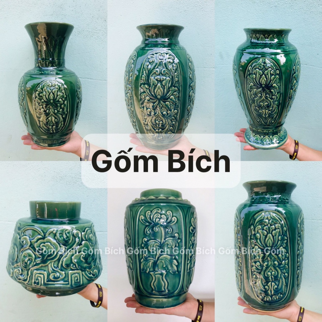Nhà cửa & Đời sống > Trang trí nhà cửa > Bình trang trí || Bình Hoa Lọ Hoa Men Ngọc Khắc Hoa Sen Nổi - Gốm Sứ Bát Tràng - Decor Nội Thất Văn PhòngCòn hàng