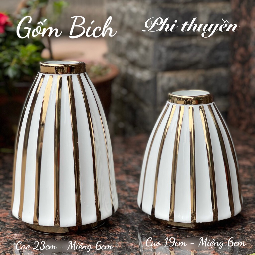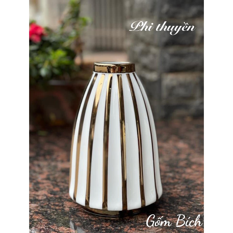 Bình Hoa Lọ Hoa Sứ Dáng Phi Thuyền Trắng Vẽ Vàng - Gốm Sứ Bát Tràng - Lọ Hoa Decor Đẹp