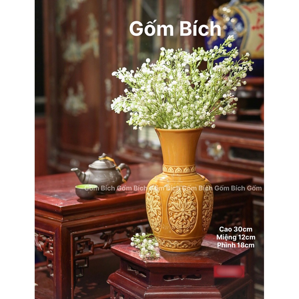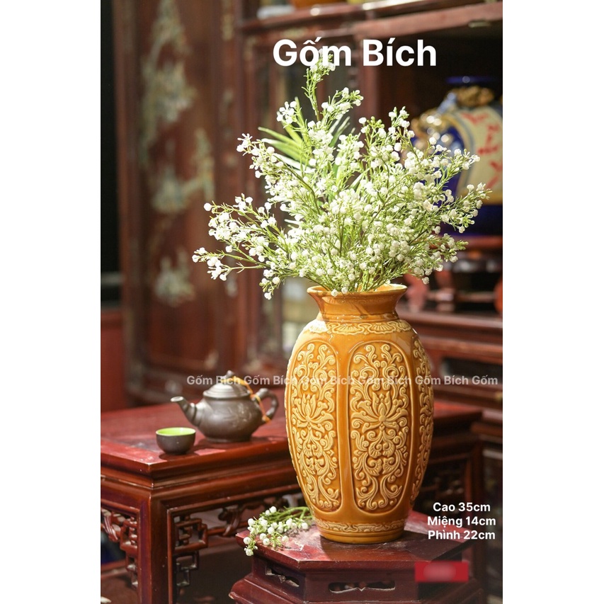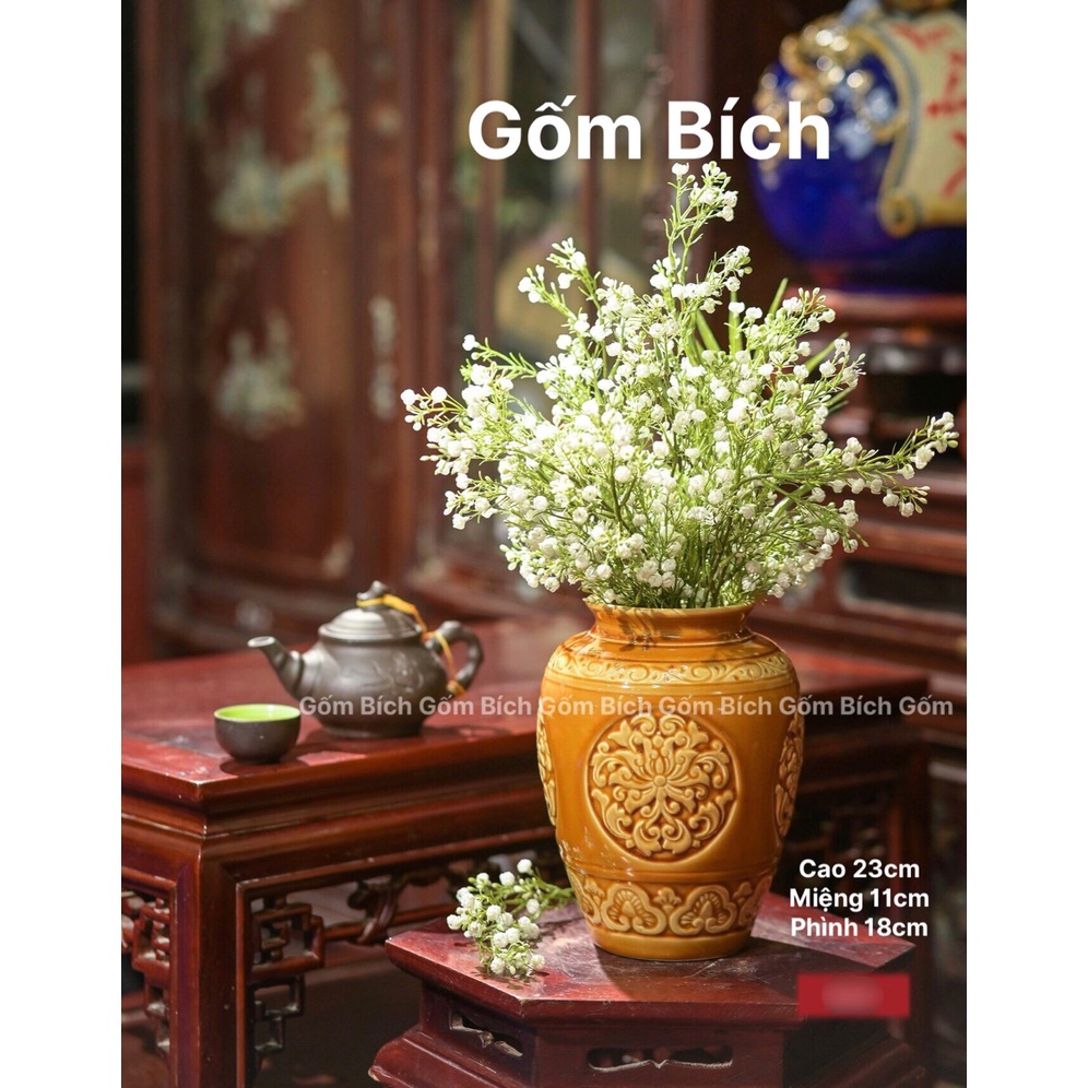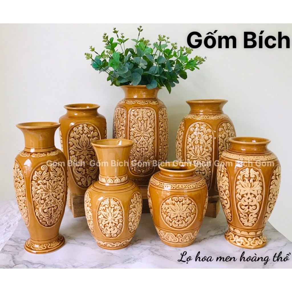Nhà cửa & Đời sống > Trang trí nhà cửa > Bình trang trí || Bình Hoa Lọ Hoa Sứ Men Hoàng Thổ Nhiều Mẫu Khắc Sen Nổi Gốm Sứ Bát Tràng - Gốm BíchCòn hàng