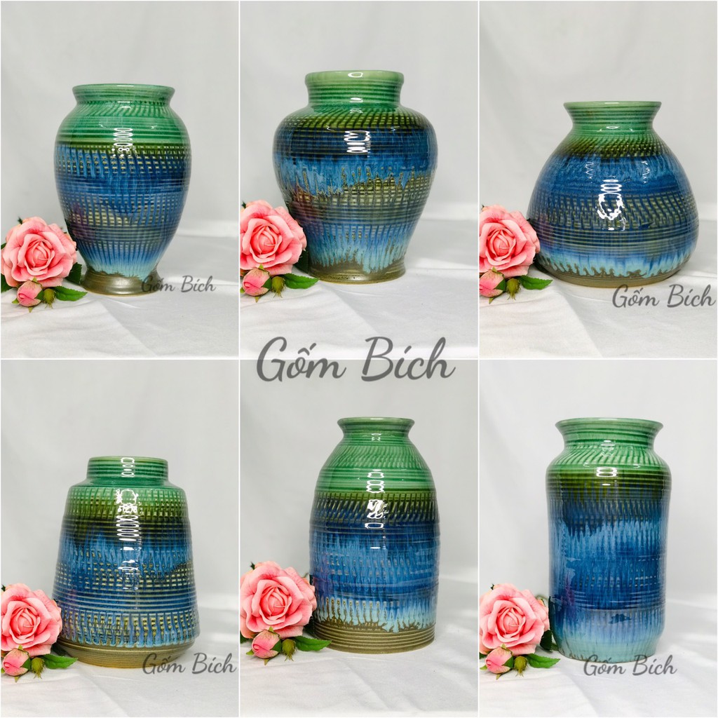 Giới thiệu Bình Hoa Lọ Hoa Thổ Cẩm Xanh Nhiều Mẫu Đẹp Gốm Sứ Bát Tràng - Gốm Bích