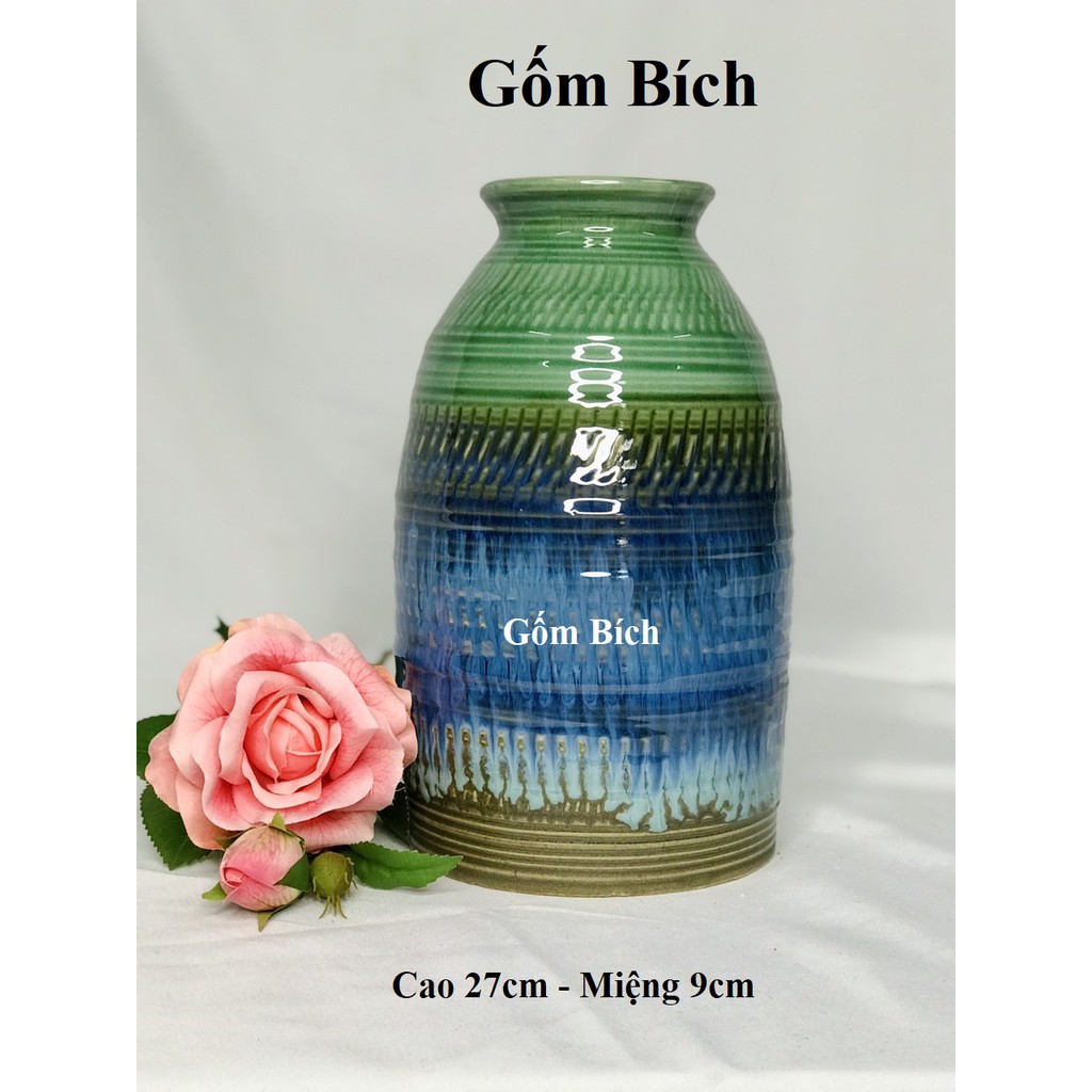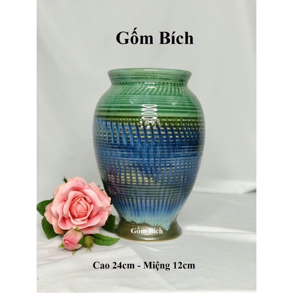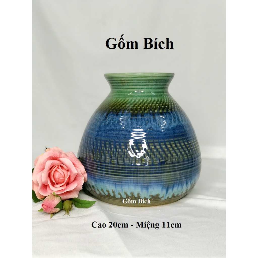 Bình Hoa Lọ Hoa Thổ Cẩm Xanh Nhiều Mẫu Đẹp Gốm Sứ Bát Tràng - Gốm Bích