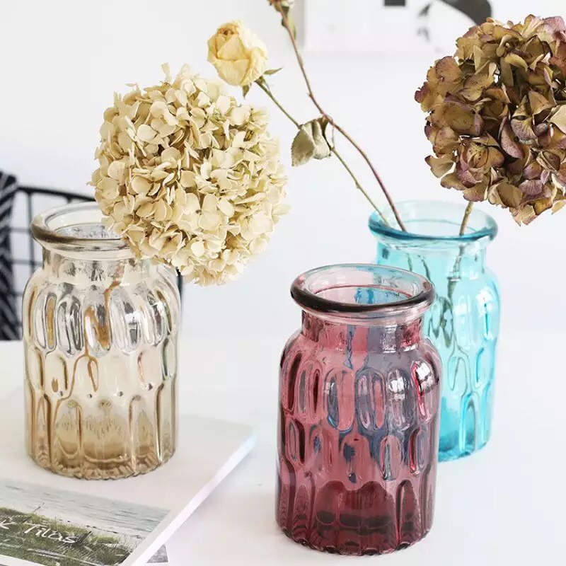 - Chất liệu thủy tinh màu trang nhã dễ cắm nhiều loại hoa. Có các màu: xanh, đỏ mận, ghi khói