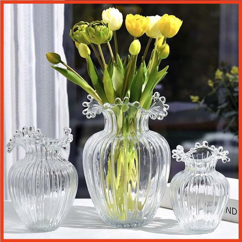 Bình hoa - Lọ hoa thủy tinh trong suốt miệng lượn decor phòng,cắm hoa siêu đẹp