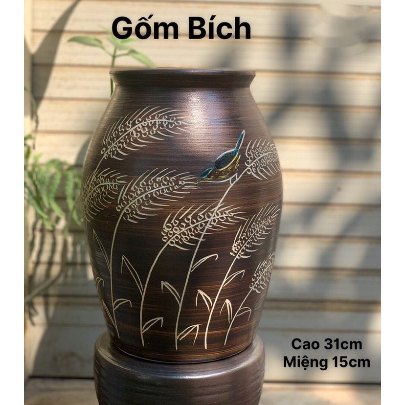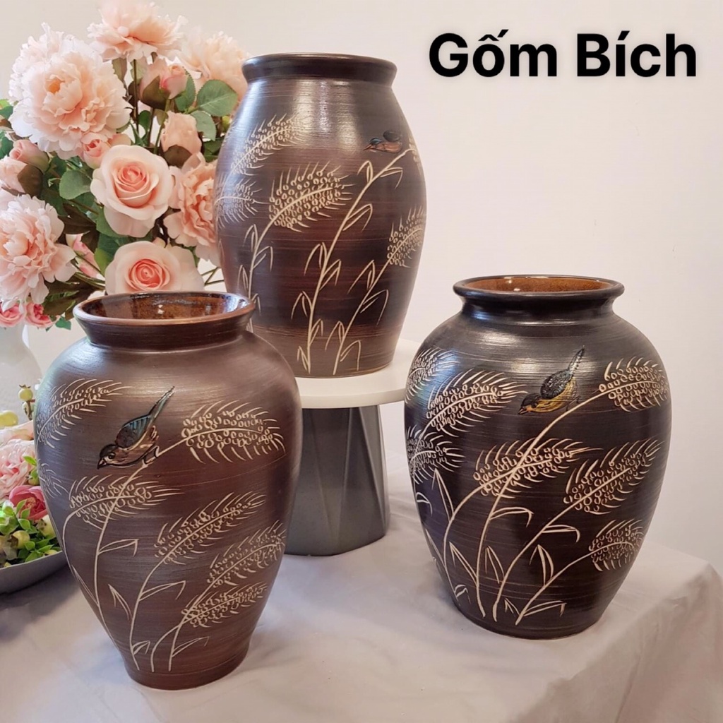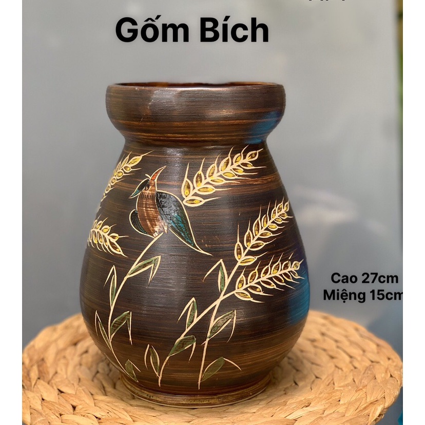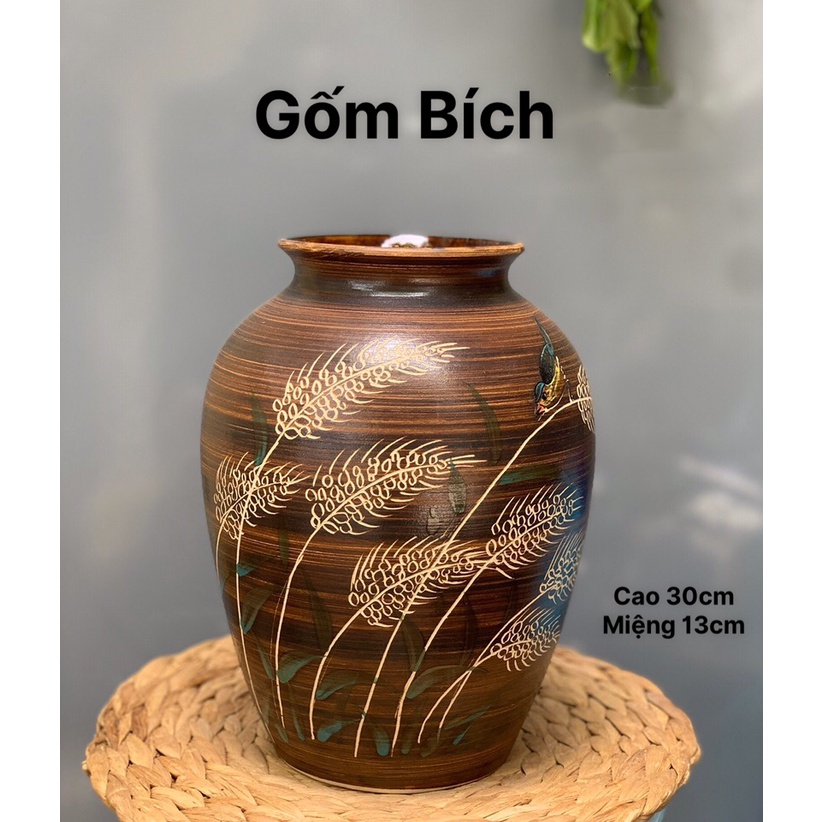 Nhà cửa & Đời sống > Trang trí nhà cửa > Bình trang trí || Bình Hoa Lọ Hoa Vẽ Tay Bông Lúa Men Mộc Gốm Sứ Bát Tràng - Gốm BíchCòn hàng