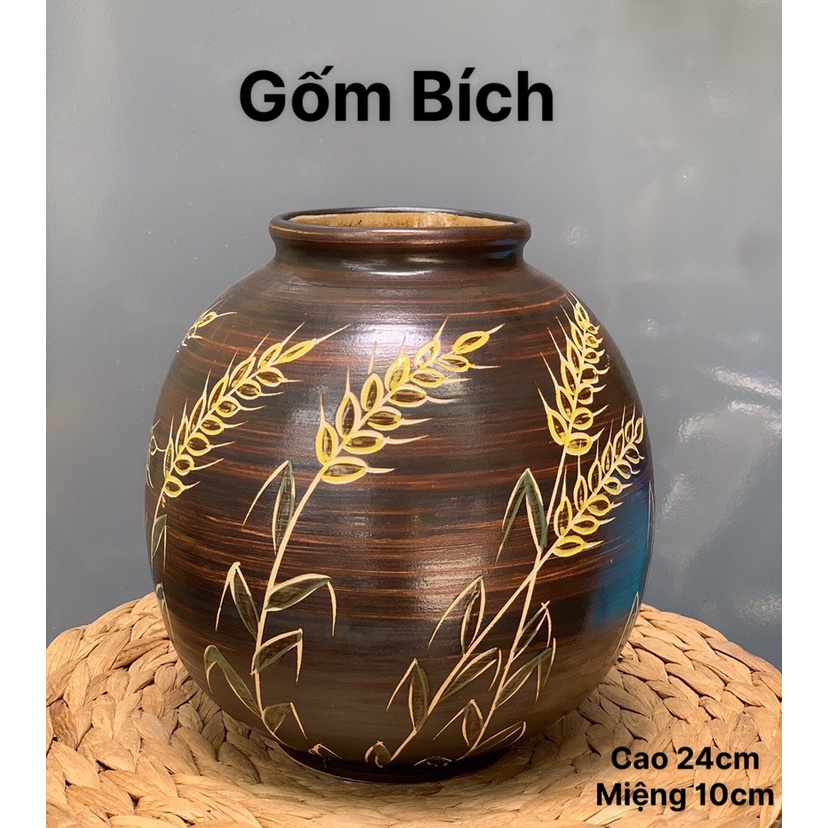 Bình Hoa Lọ Hoa Vẽ Tay Bông Lúa Men Mộc Gốm Sứ Bát Tràng - Gốm Bích