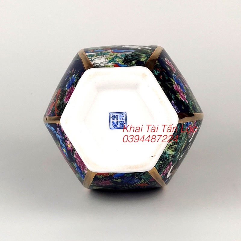 💥💥 BÌNH HOA LỤC GIÁC CÀN LONG TỨ QUÝ CÁT TƯỜNG MÀU XANH GIẢ CỔ 💥💥 ( 550k/ sp )🍀 Chi tiết :