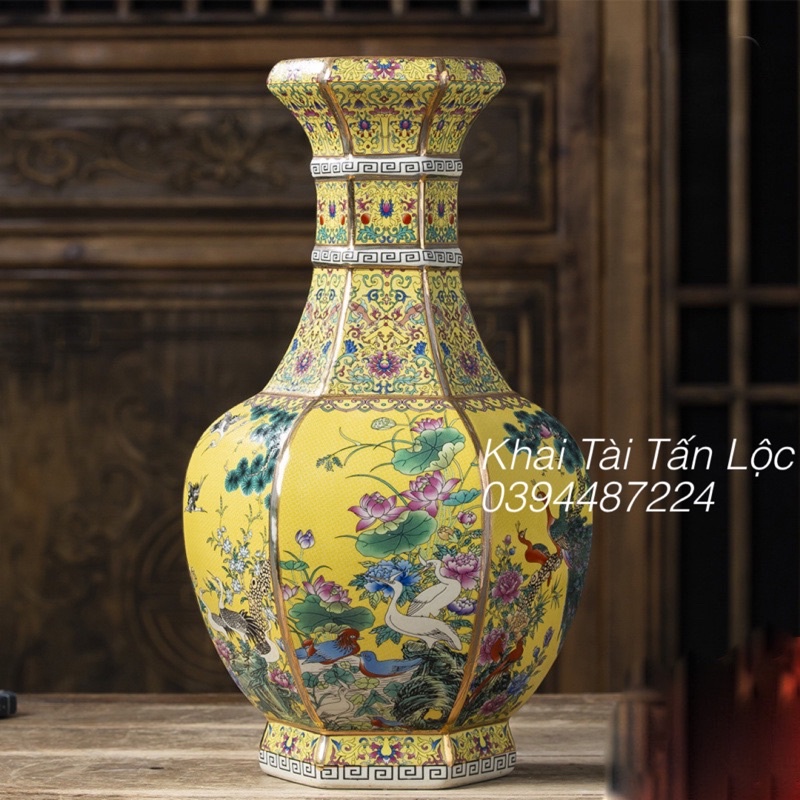 Nhà cửa & Đời sống > Trang trí nhà cửa > Bình trang trí || Bình hoa lục giác Càn Long Tứ Quý Cát Tường vàng giả cổCòn hàng