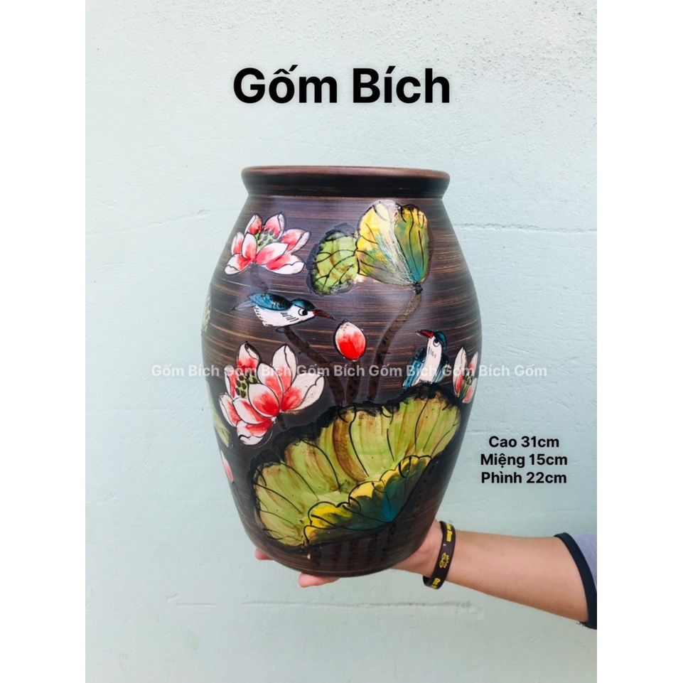 - Kích thước: cao 31cm, miệng 15cm, phình 22cm