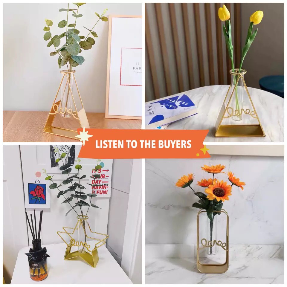 Nhà cửa & Đời sống > Trang trí nhà cửa > Bình trang trí || Bình hoa thuỷ tinh khung thép mạ vàng gắn chữ Love decor phong cách Bắc Âu độc đáo BH-002Còn hàng
