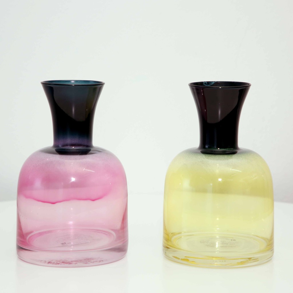 Điểm nhấn của lọ hoa này chính là kiểu thuỷ tinh màu loang và dáng bình vững chắc, nước màu thuỷ tinh quá thu hút sự chú ý!