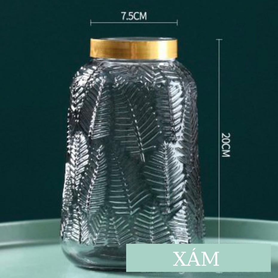 Nhà cửa & Đời sống > Trang trí nhà cửa > Bình trang trí || Bình Hoa Thuỷ Tinh, Lọ Hoa Thủy Tinh Viền Vàng Hoạ Tiết Chiếc Lá Vân Nổi, Bình Hoa Thủy Tinh Trang Trí Nội ThấtCòn hàng
