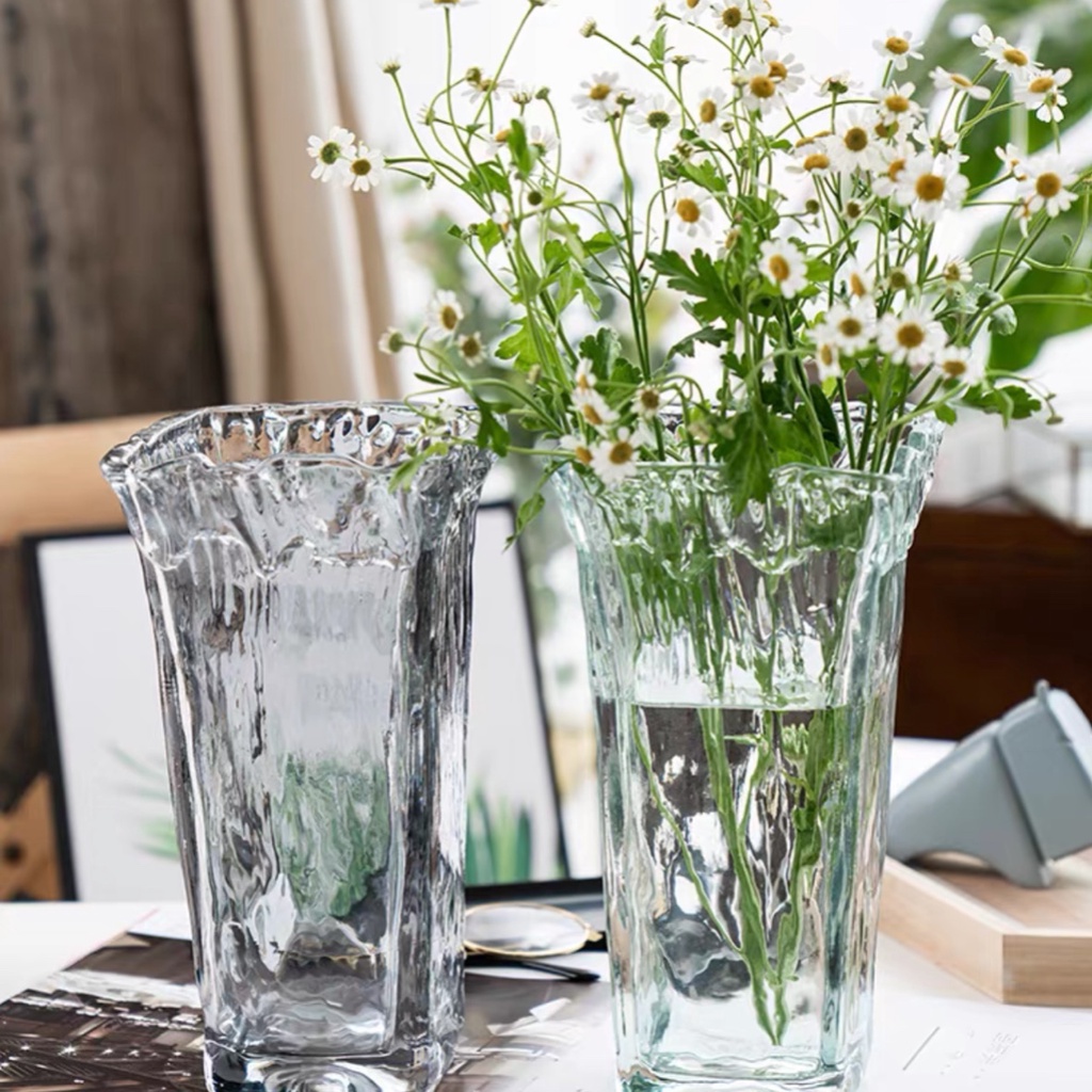 Bình hoa thủy tinh miệng rộng sóng nước Heodecor LH063, lọ hoa thủy tinh cao cấp
