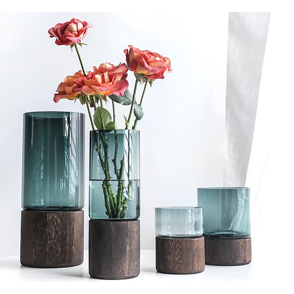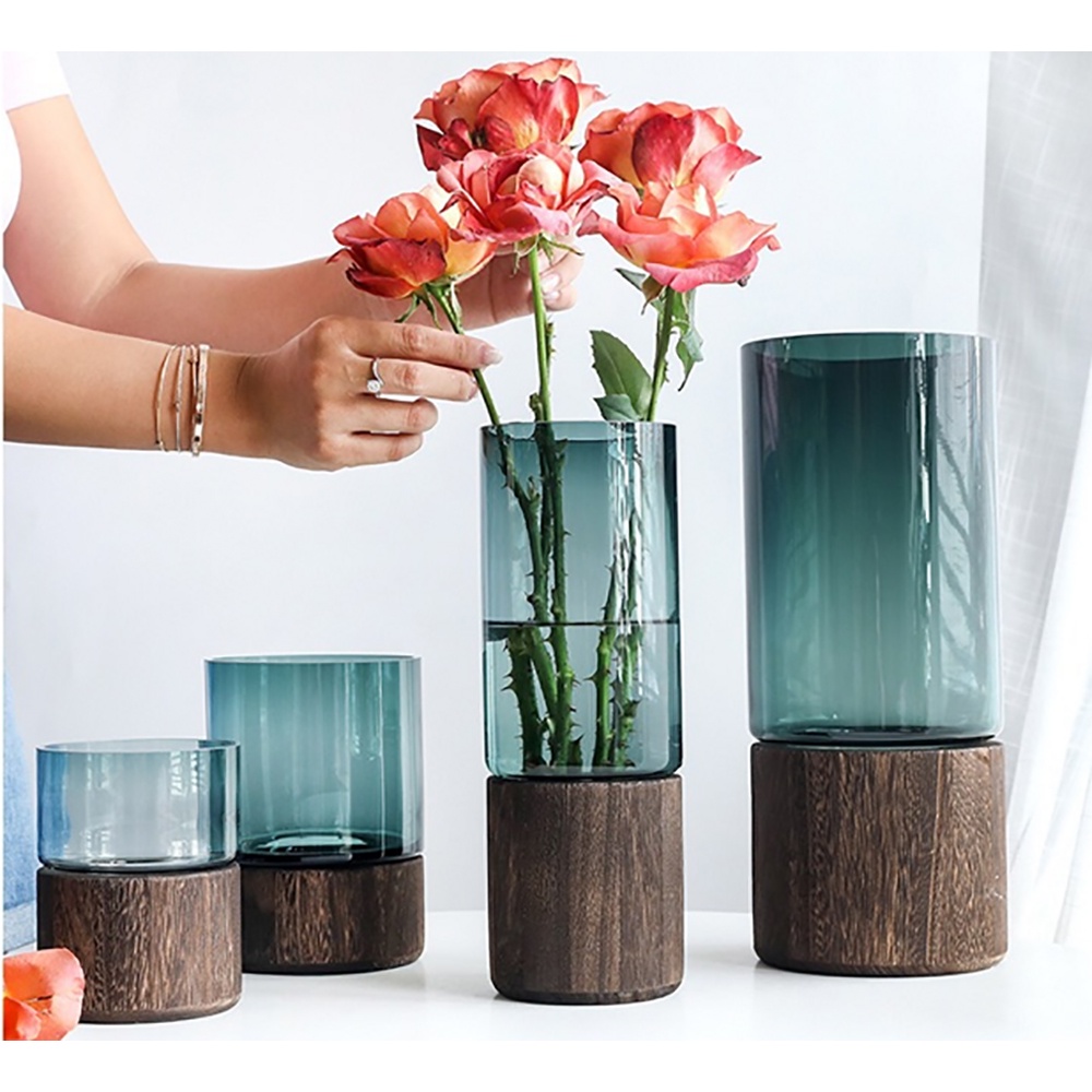Bình hoa thủy tinh đế gỗ, Bình hoa trang trí, Bình hoa trang tríVới thiết kế có đế gỗ độc đáo, đẹp mắt tạo cảm giác sang trọng, tươi mới