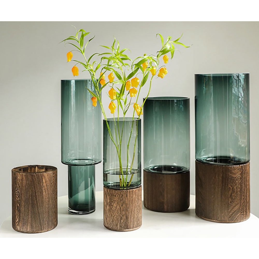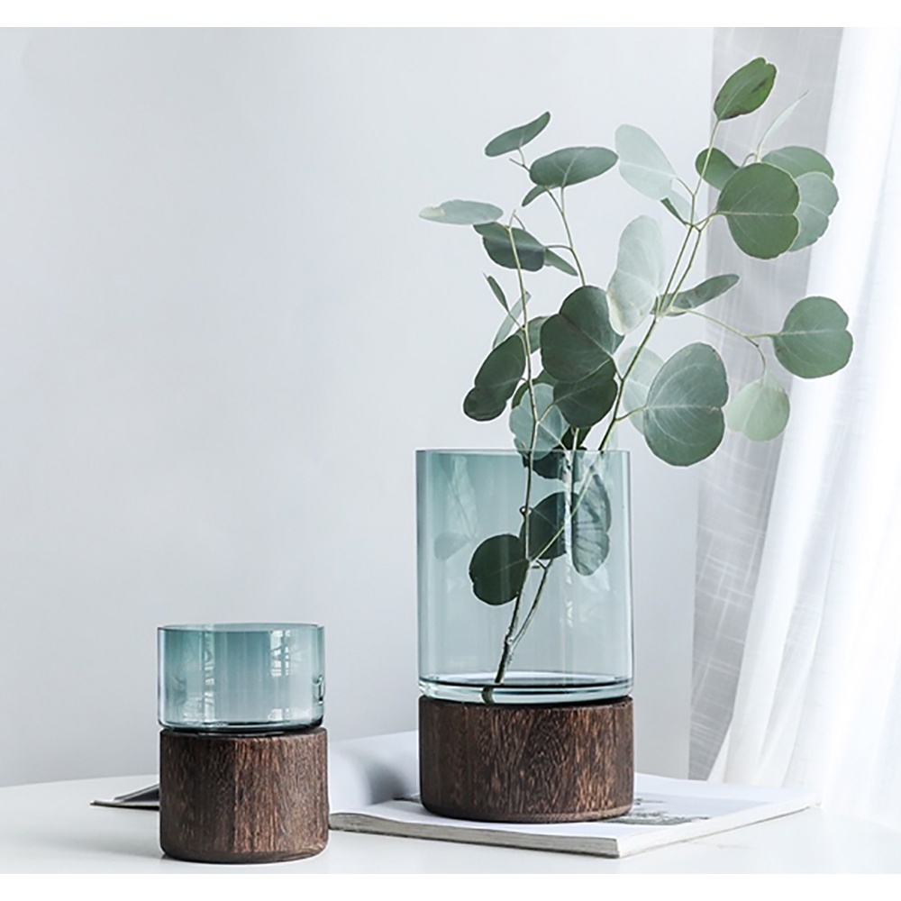 Bình Hoa Thủy Tinh Sonia - Đế gỗ, Trang Trí Nhà Cửa