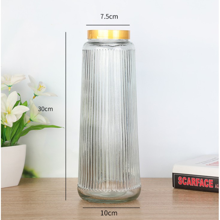 Lọ Hoa Thủy Tinh Sọc - Lọ Cắm Hoa Phong Cách Bắc Âu✔️ Lọ hoa được làm từ chất liệu thủy tinh và kiểu dáng hiện đại theo phong cách châu Âu, dễ dàng phối với bất kỳ loại hoa nào.