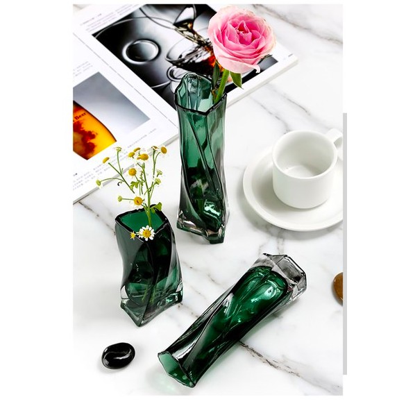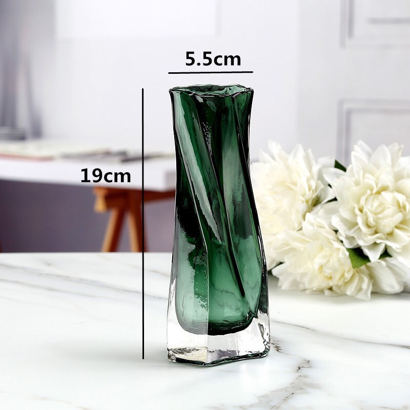 Bình hoa thuỷ tinh xoắn ốc độc đáo trang trí Qhouse , lọ hoa decor để bàn làm việc phong cách Vintage