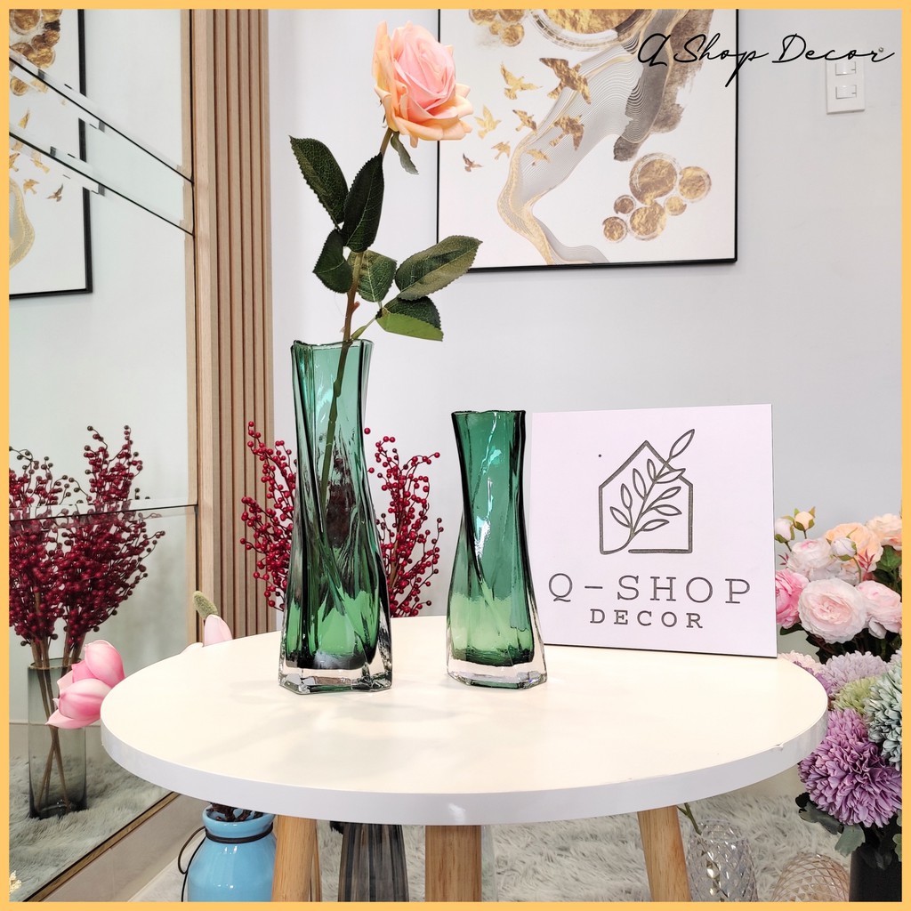 Bình hoa thuỷ tinh xoắn ốc độc đáo trang trí Qhouse , lọ hoa decor để bàn làm việc phong cách VintageBình hoa thuỷ tinh là một món phụ kiện trang trí nội thất cơ bản không thể thiếu cho mọi nhà, căn hộ, văn phòng, shop cửa hàng … Với bộ sưu tập đa dạng mẫu mã, kiểu dáng các loại bình hoa trang trí thuỷ tinh, gốm sứ chắc chắn là một giải pháp hữu hiệu mang lại cho không gian sống sự thanh lịch, cao cấp, dáng vẻ trẻ trung hiện đại.