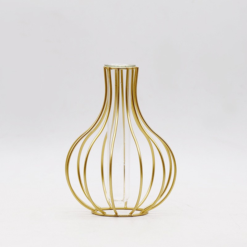 Thiết kế thông minh khi kết hợp giữa khung sắt mạ vàng với ống thủy tinh cắm hoa độc đáo