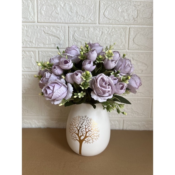 - Chất liệu: Hoa vải cao cấp; lọ gốm xứ