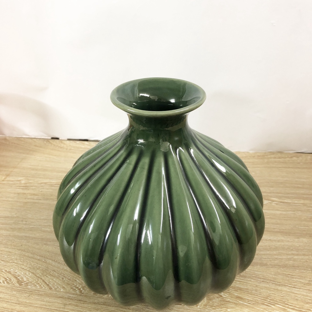 Bình hoa tròn gốm sứ Bát Tràng cắm hoa đẹp freeship sáng bóng