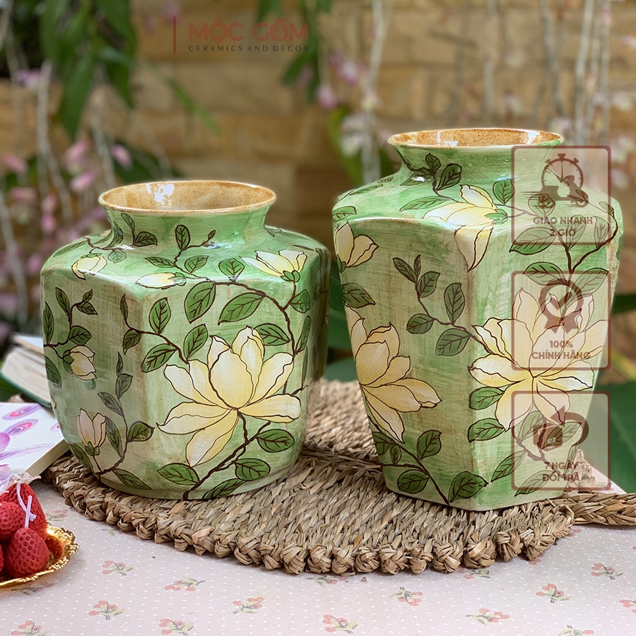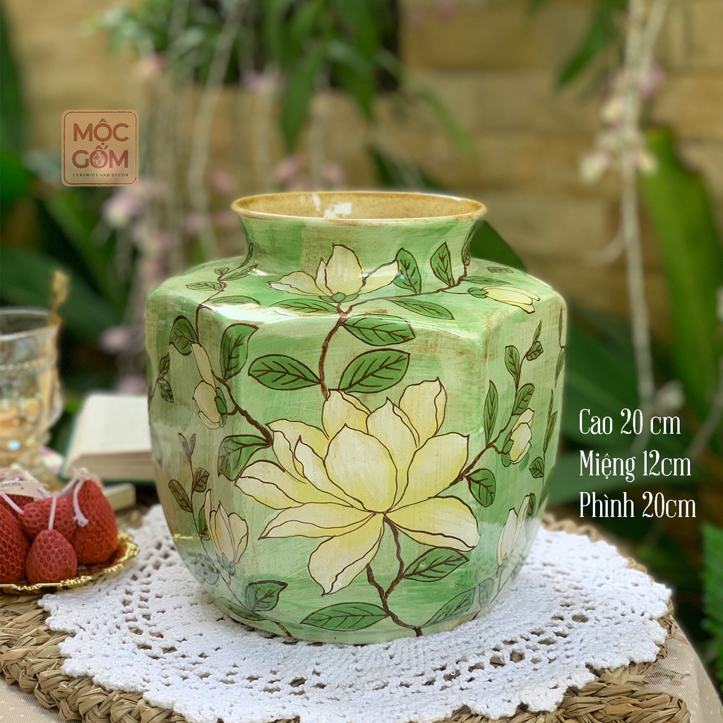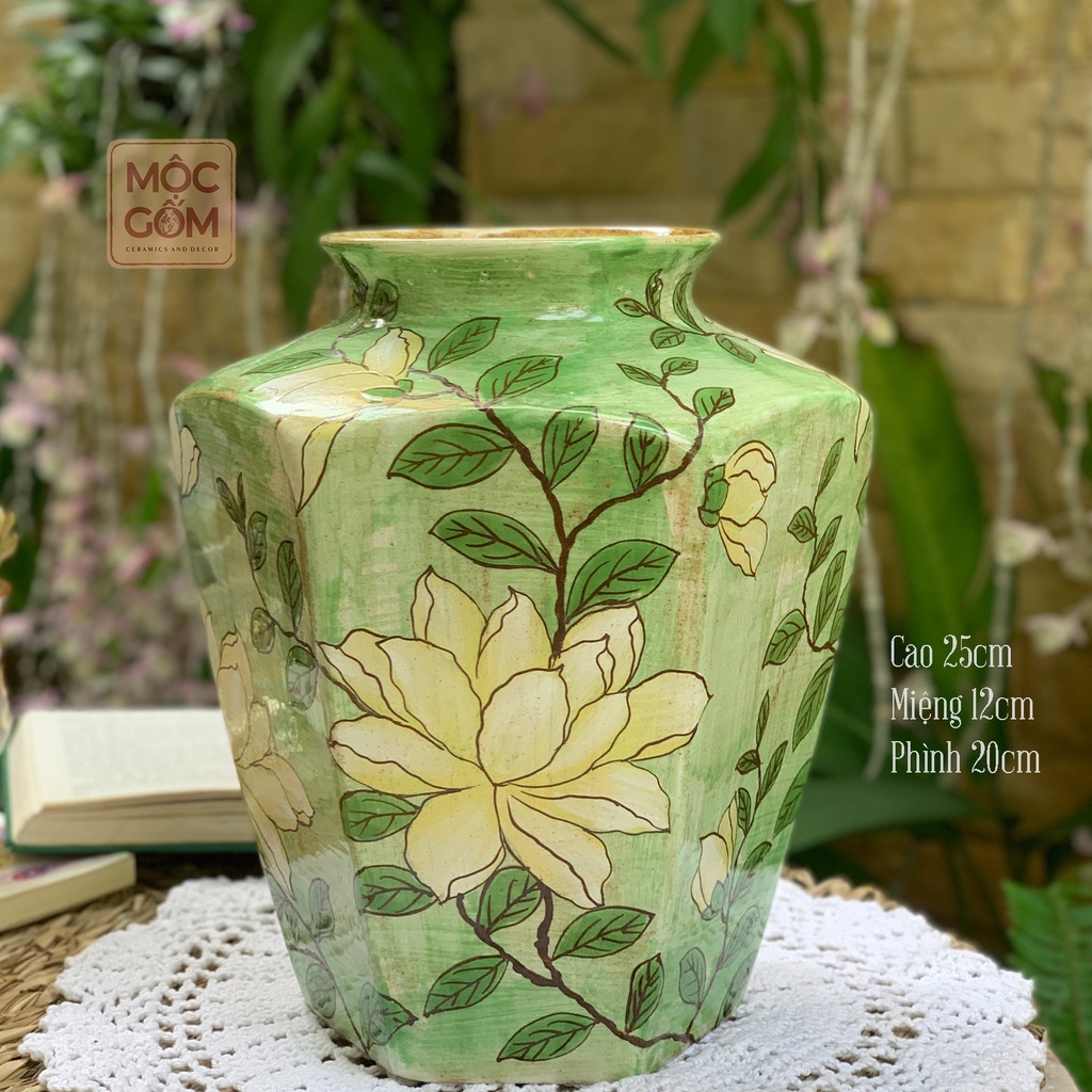 Nhà cửa & Đời sống > Trang trí nhà cửa > Bình trang trí || Bình hoa vẽ tay hoa gốm Bát Tràng cao cấp, dáng lục giác họa tiết hoa lá Mộc Gốm MG90Còn hàng