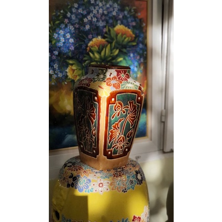 Bình hoa dạng vuông gốm sứ Nam Bộ cao 32cm vòng bụng 65cm miệng bình 10cm.Sản phẩm gốm sứ Nam Bộ.
