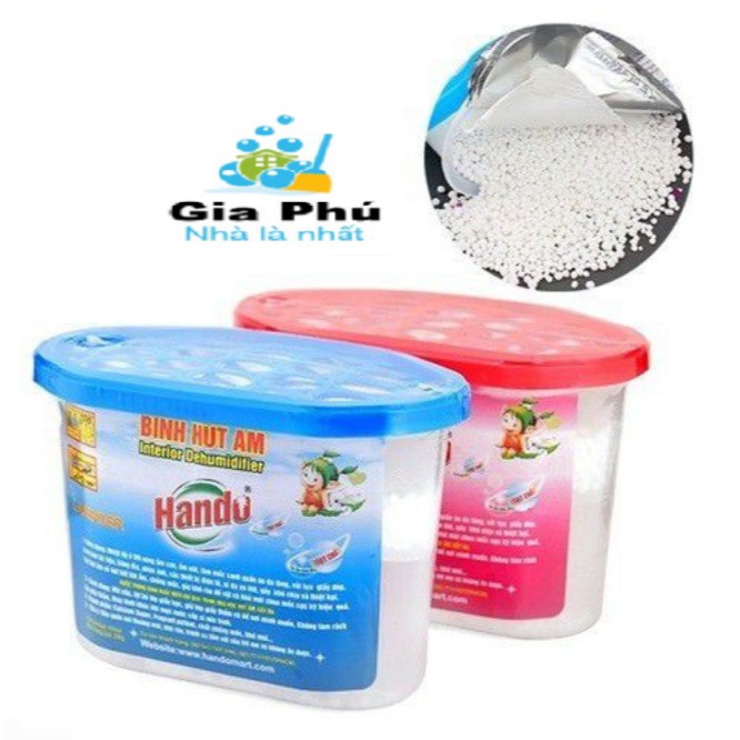 Hút không khí ẩm vào trong bình, bảo vệ đồ vật khỏi nấm mốc do do không khí ẩm ướt, trời nồm, tạo môi trường khô ráo sạch sẽ vệ sinh. Cách dùng: bỏ lớp giấy bạc sau đỏ đóng nắp lại, để nơi mình muốn. Sau 1 thời gian không khí ẩm sẽ bị hút vào bình, khi bình đầy nước thì thay bằng bình khác. SP có thể đặt trong tủ quần áo, tủ thuốc, tủ giày dép, tủ bếp, tủ rượu và các góc chứa đồ có khả năng bị ẩm, mốc.Giới thiệu sản phẩm Bình hút ẩm Hando 450ml