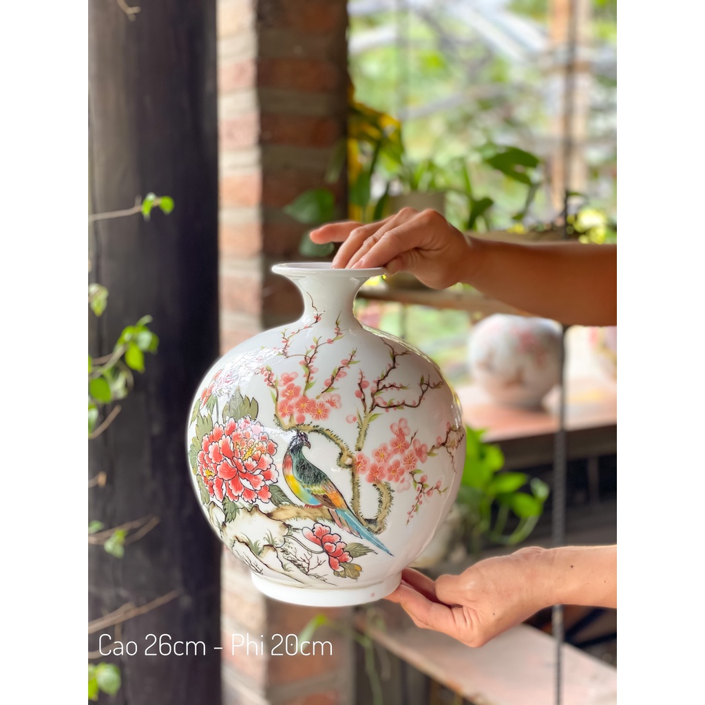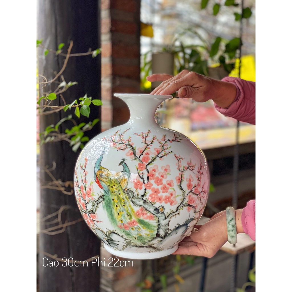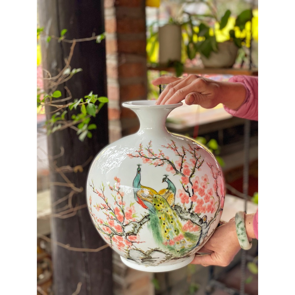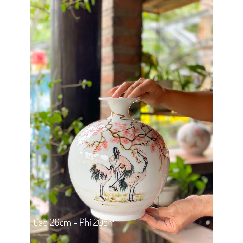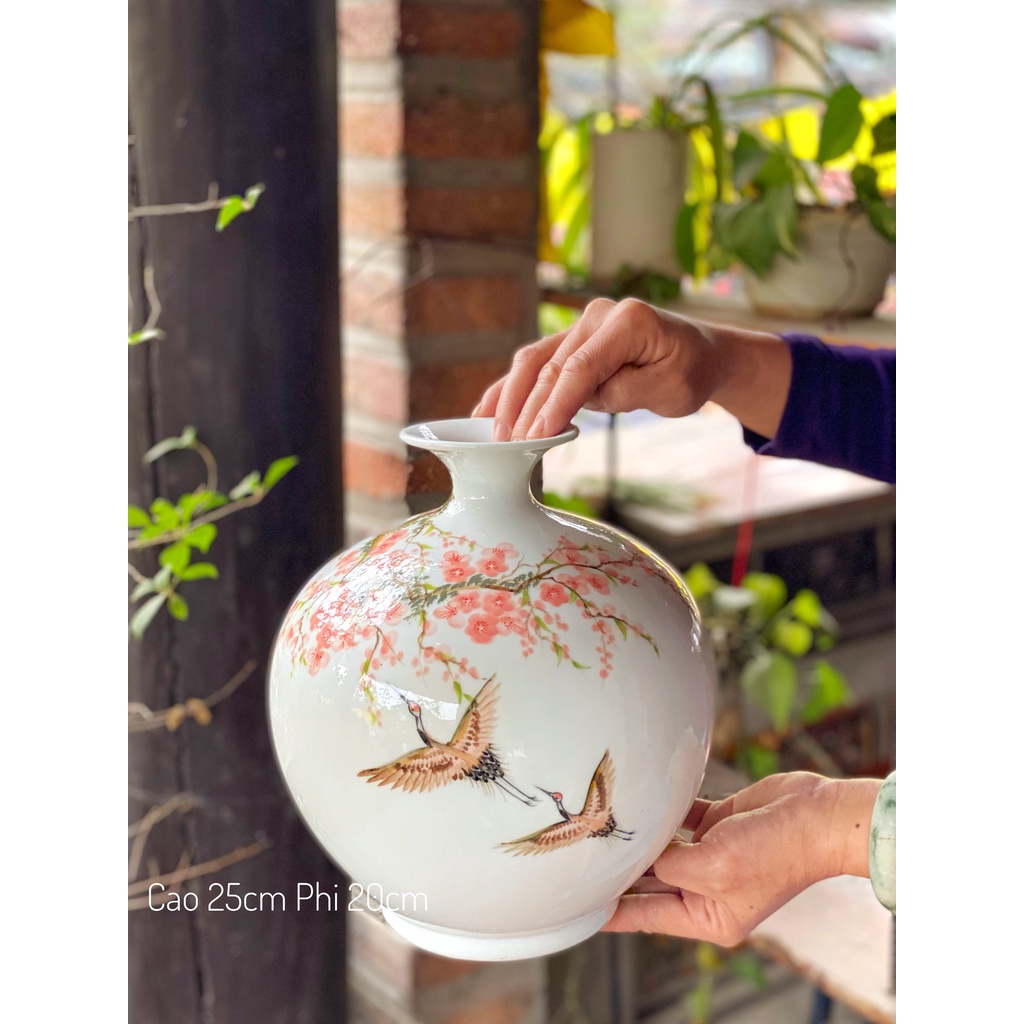 Giới thiệu Bình Hút Lộc Hạc Đào, Trĩ Đào hoạ tiết vẽ tay, Lọ Hoa Hút Tài Lộc Trang Trí, Decor Phòng Khách - Gốm Sứ Bát Tràng