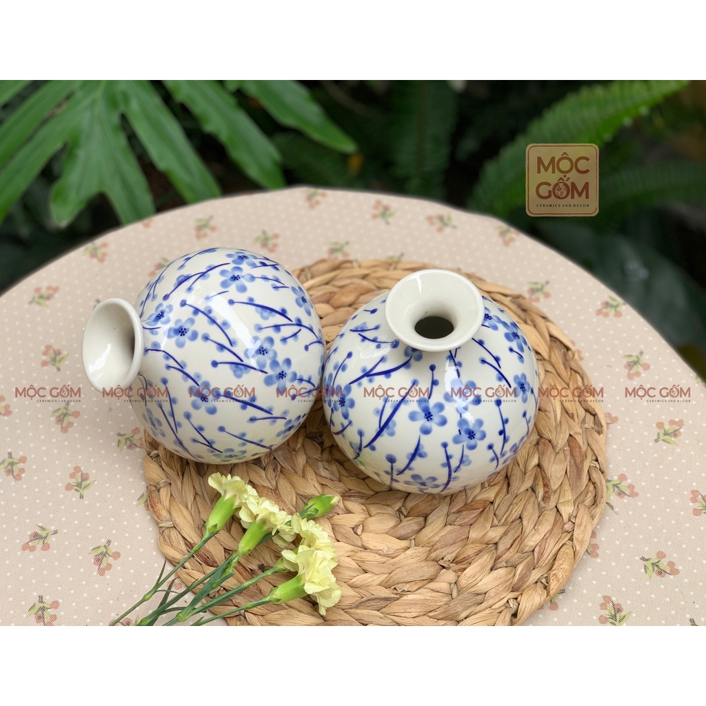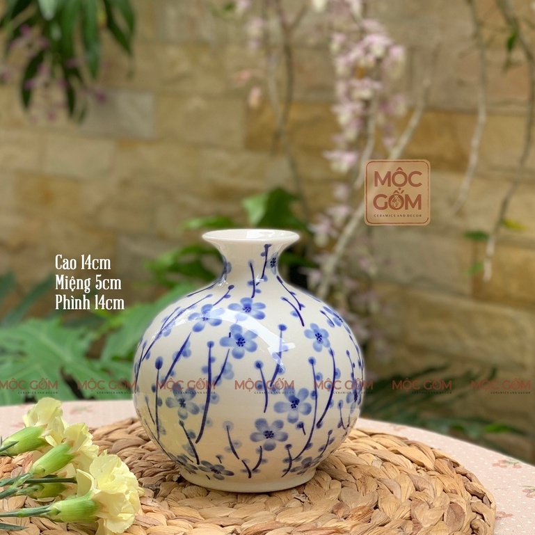 Bình hút lộc phong thủy - Lọ hoa hút tài lộc gốm sứ Bát Tràng cao cấp men hoa lam hoài cổ vẽ tay thủ công Mộc Gốm MG79