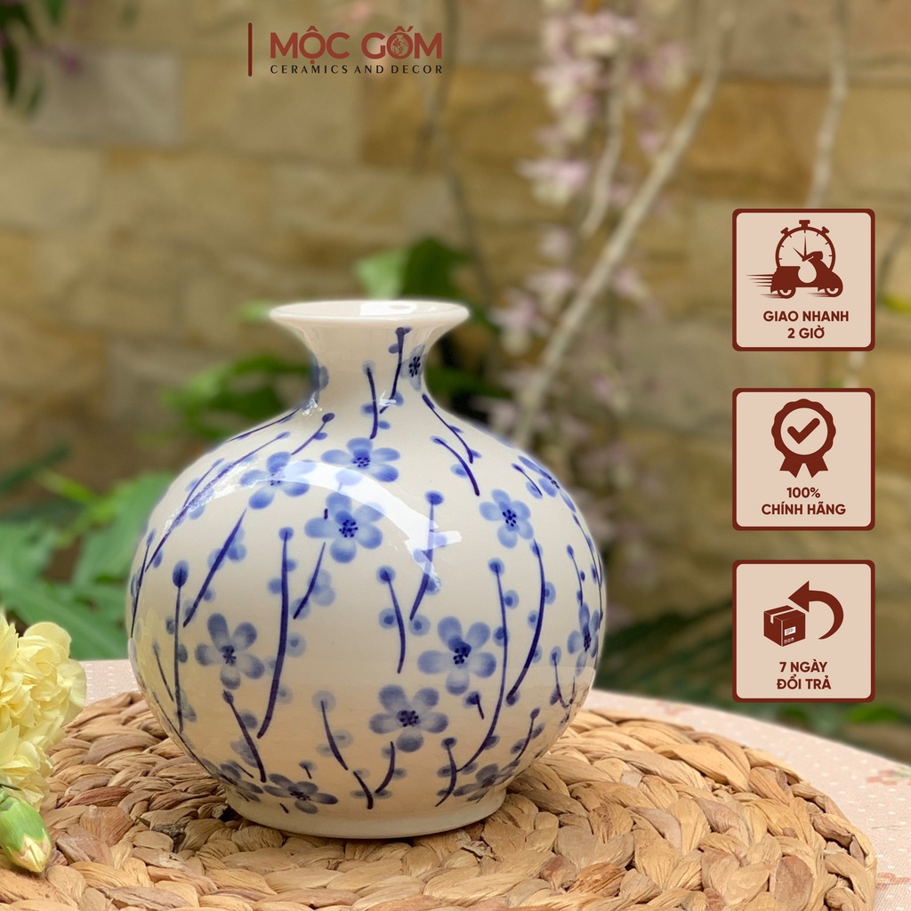 Nhà cửa & Đời sống > Trang trí nhà cửa > Bình trang trí || Bình hút lộc phong thủy - Lọ hoa hút tài lộc gốm sứ Bát Tràng cao cấp men hoa lam hoài cổ vẽ tay thủ công Mộc Gốm MG79Còn hàng