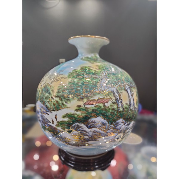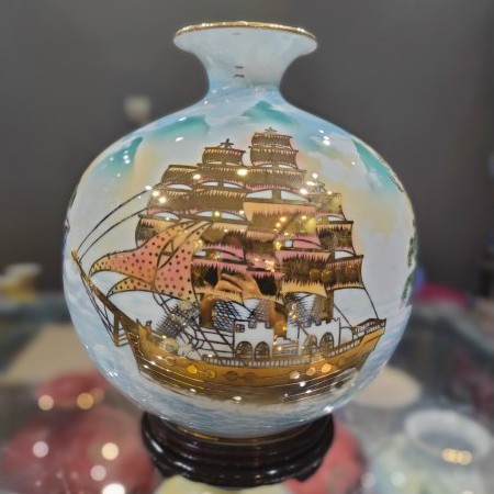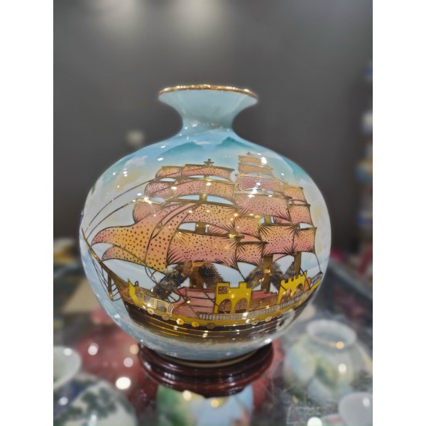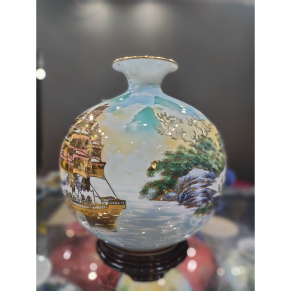 Giới thiệu Bình hút tài lộc thuận buồm xuôi gió sơn vẽ vàng cao cấp, thuận buồm sơn thủy màu 3D - Gốm Nghệ Nhân