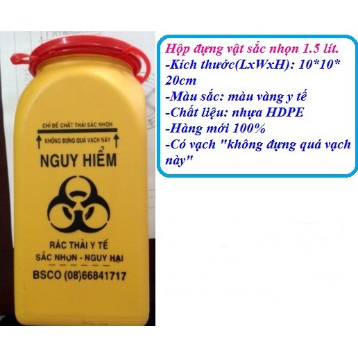 Bình Hủy Kim Tiêm Y Tế 1.5 Lít Và 6.8 Lít1. Hộp kim tiêm y tế 1.5 lít
