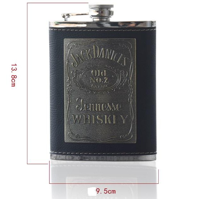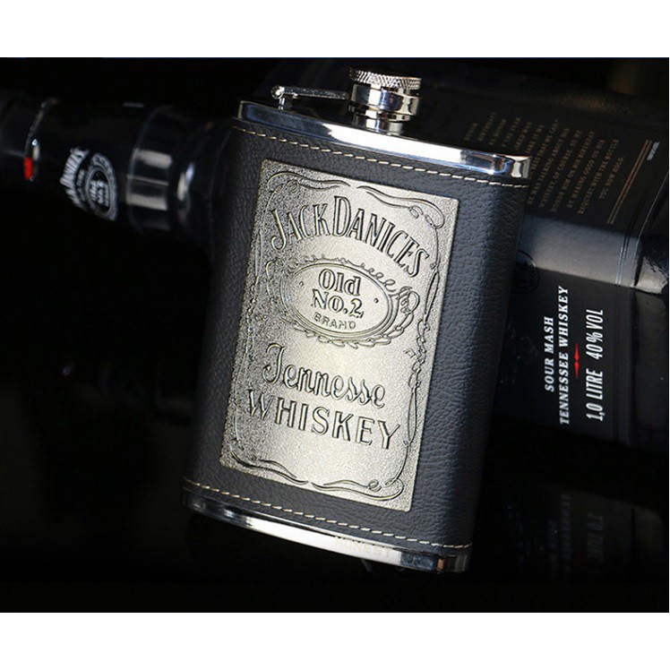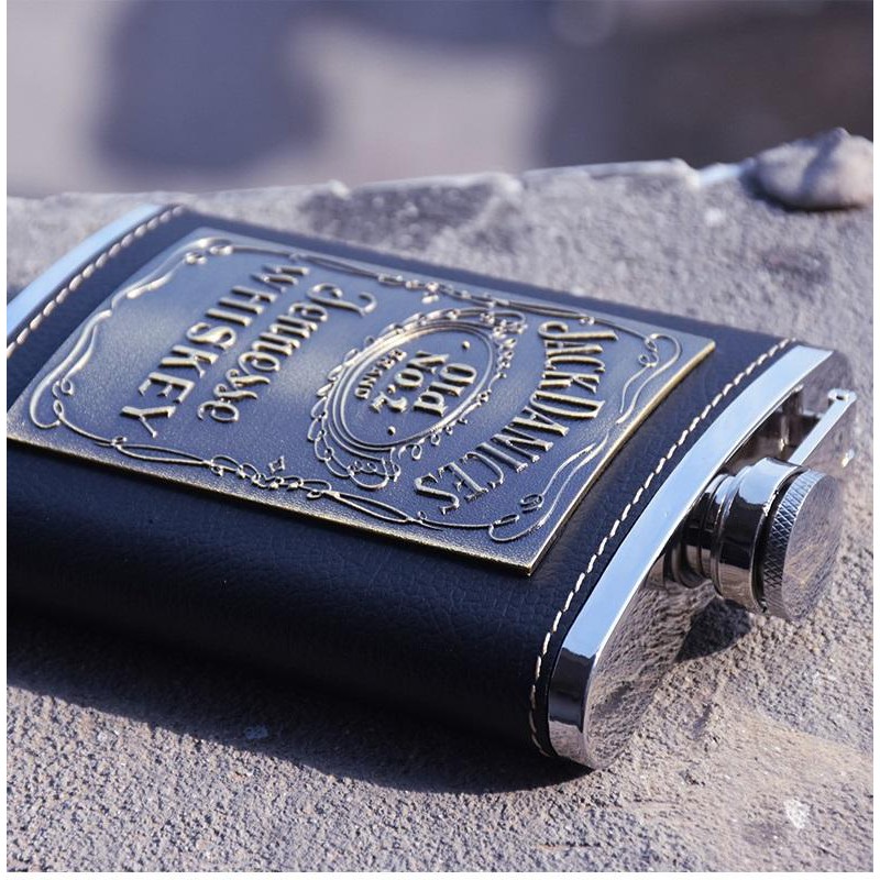 Nhà cửa & Đời sống > Bộ đồ bàn ăn > Bình nước & phụ kiện || Bình inox đựng rươu 8oz bọc da logo Jack 250mlCòn hàng