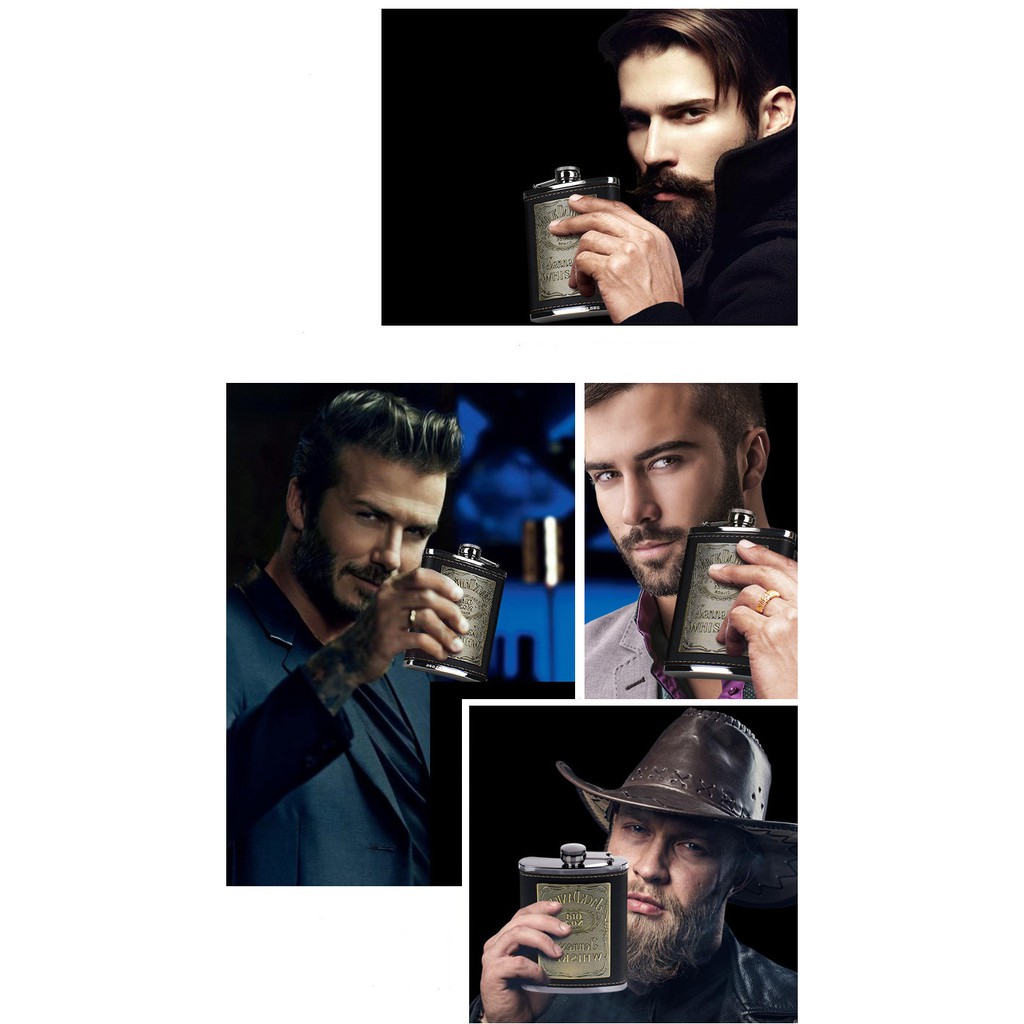 Giới thiệu Bình inox đựng rươu 8oz bọc da logo Jack 250ml