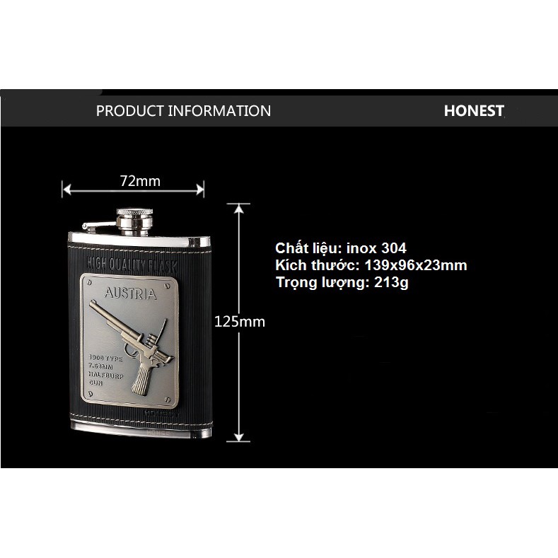 Bình inox đựng rươu Honest 250ml 8oz logo các loạiTHÔNG SỐ SẢN PHẨM