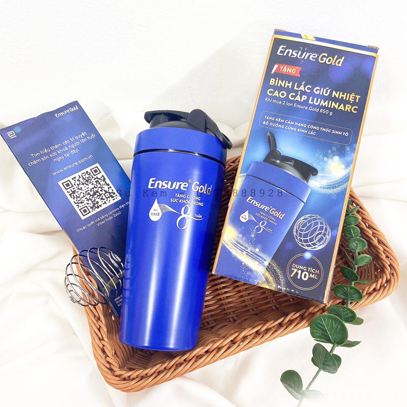 Hàng quà tặng từ sữa Ensure Gold Abbott có IN LOGO QUẢNG CÁO MỘT MẶT TRÊN THÂN BÌNH.