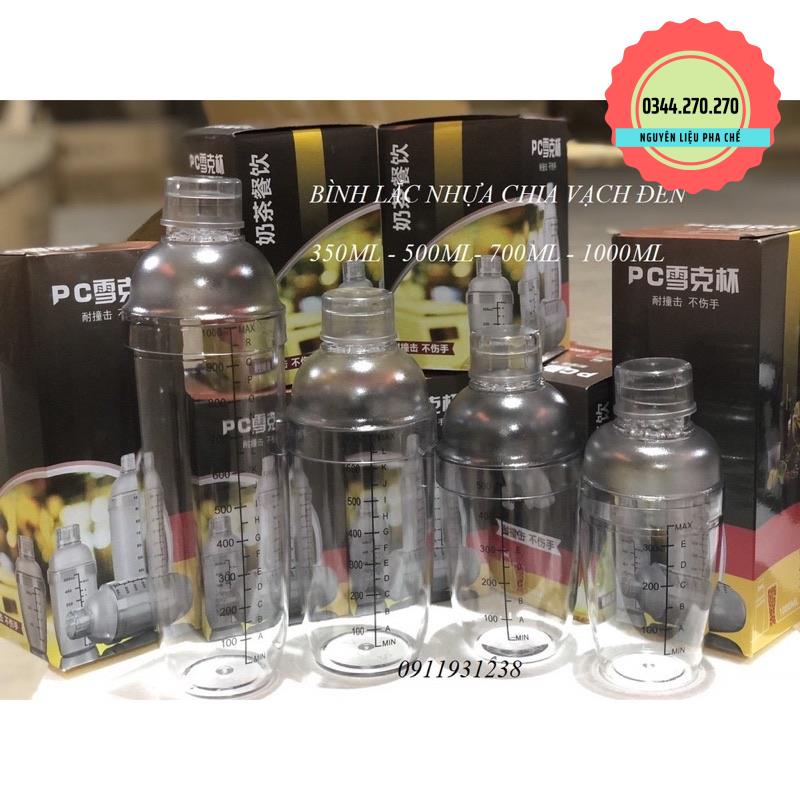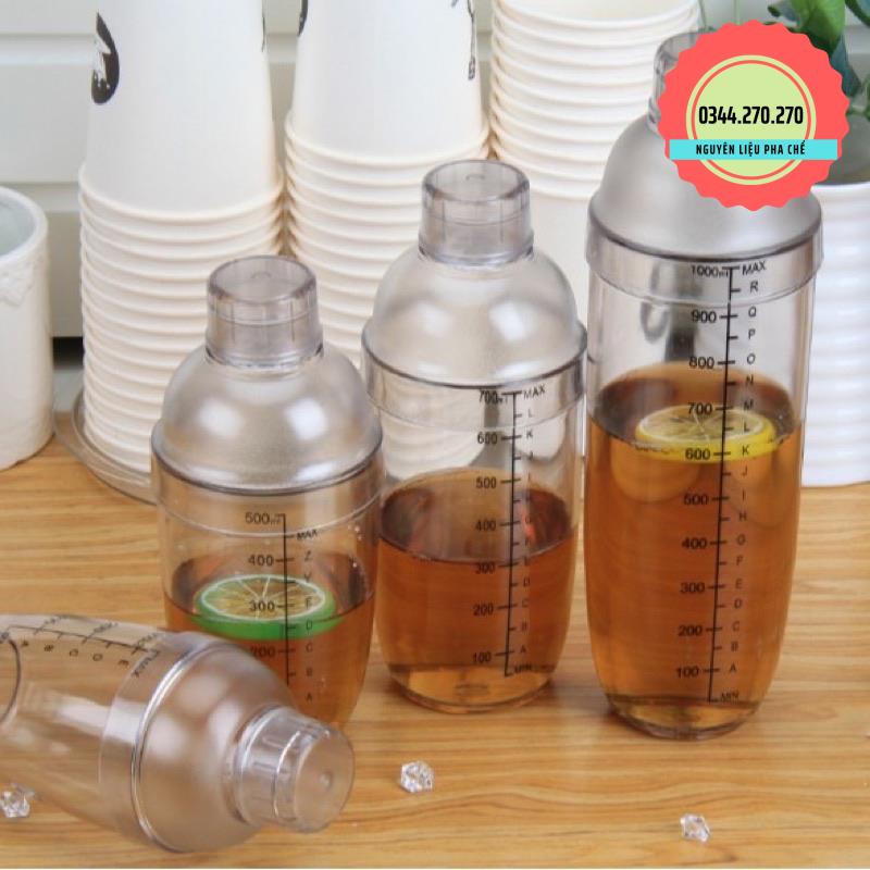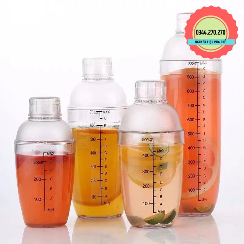 Bình lắc chuyên dùng trong pha chế, có vạch kẻ chia ml. Nhựa trong, cứng, độ bên cao.Có đủ các loại 350ml, 500ml, 700ml cho quý khách lựa chọn.