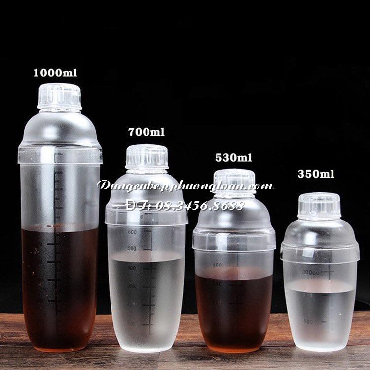 Bình lắc nhựa trong vạch đen chuyên dùng pha chế cocktail, trà sữa 500ml, 700ml, 1000ml