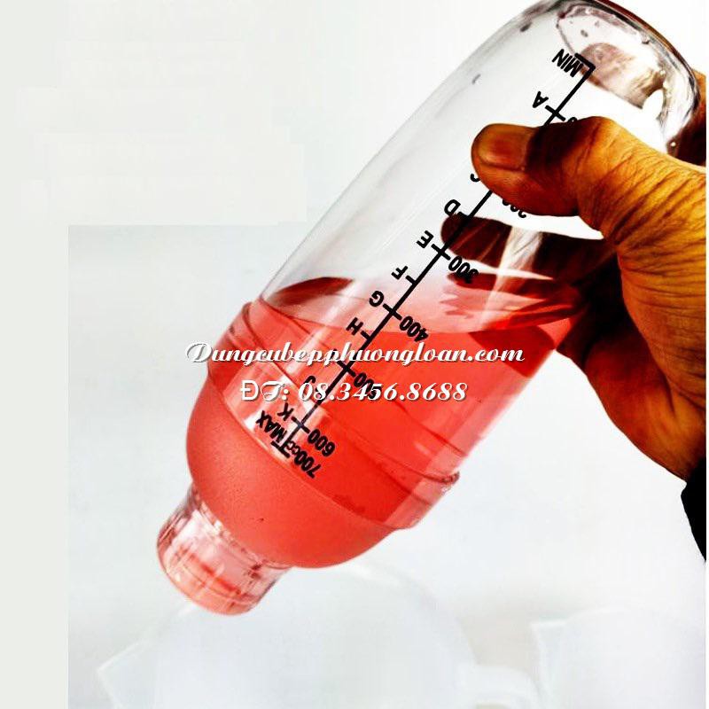 Bình lắc pha chế shaker bằng nhựa cao cấp có độ bền cao và có vạch chia định lượng in màu đen rõ ràng, rất tiện dụng khi bạn căn nguyên liệu sử dụng.Chất liệu dầy dặn