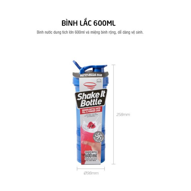 Dung tích: 600mlChất liệu: thân bình , nắp , quai cầm , banh lắc bằng nhựa PP. Gioăng Silicone
