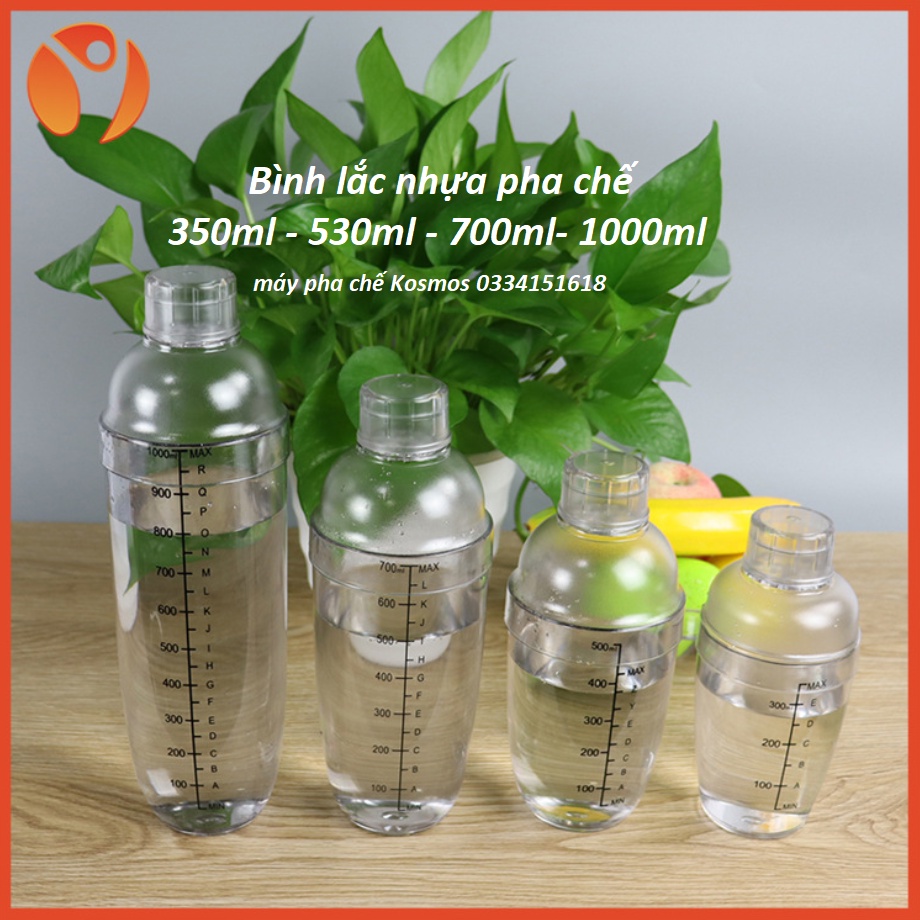 Bình lắc Shaker pha chế nhựa chia vạch đen 350ml- 500ml - 700ml - 1000ml - nắp bình lắc